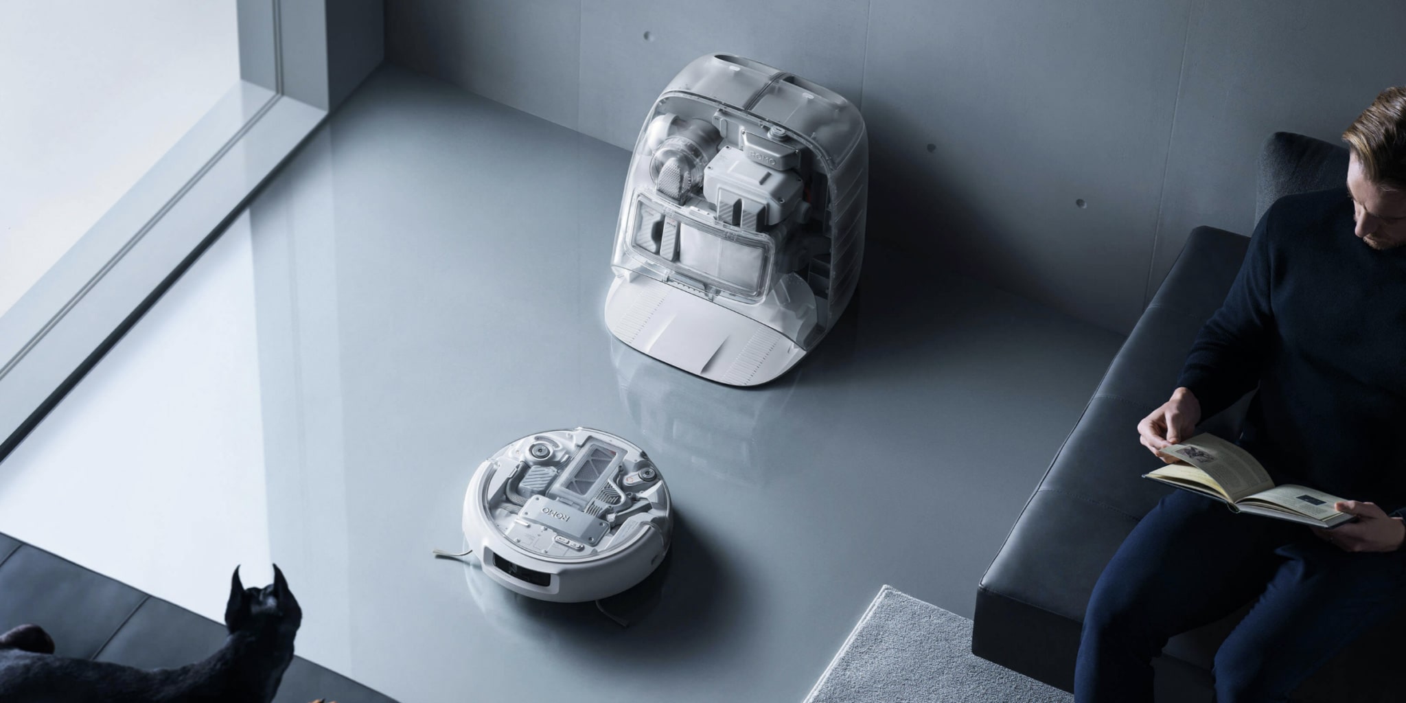 Флагманська модель отримала базу з прозорими вставками та фірмовою технологією струменевої самопромивки під високим тиском. Пристрій може обслуговувати себе до 200 днів.