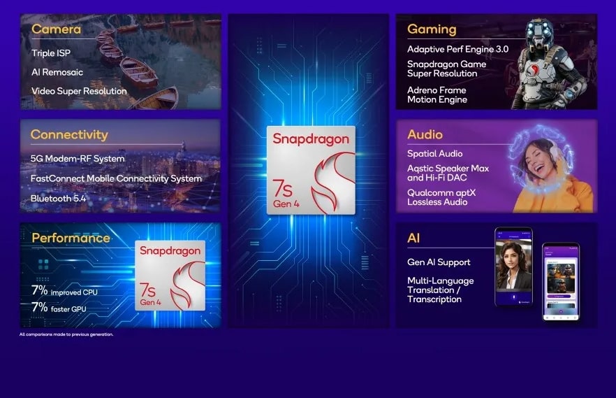 В іншому Snapdragon 7s Gen 4 залишається еволюційним оновленням, пропонуючи помірне зростання швидкості та збереження AI-функцій минулого покоління.