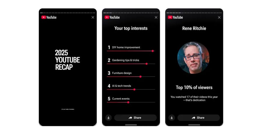 YouTube представив Recap — персональні підсумки року, в яких зібрані найцікавіші звички користувача щодо перегляду відео.