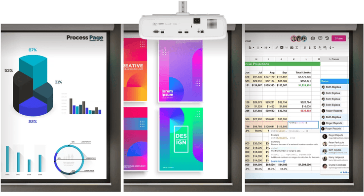Висока контрастність проєктора дозволяє відображати чіткий текст, а 1.2-кратний зум забезпечує достатню настройку зображення. Пристрій характеризується покриттям 98% стандарту Rec. 709 пропонує різні режими для відображення інфографіки, презентацій та електронних таблиць.