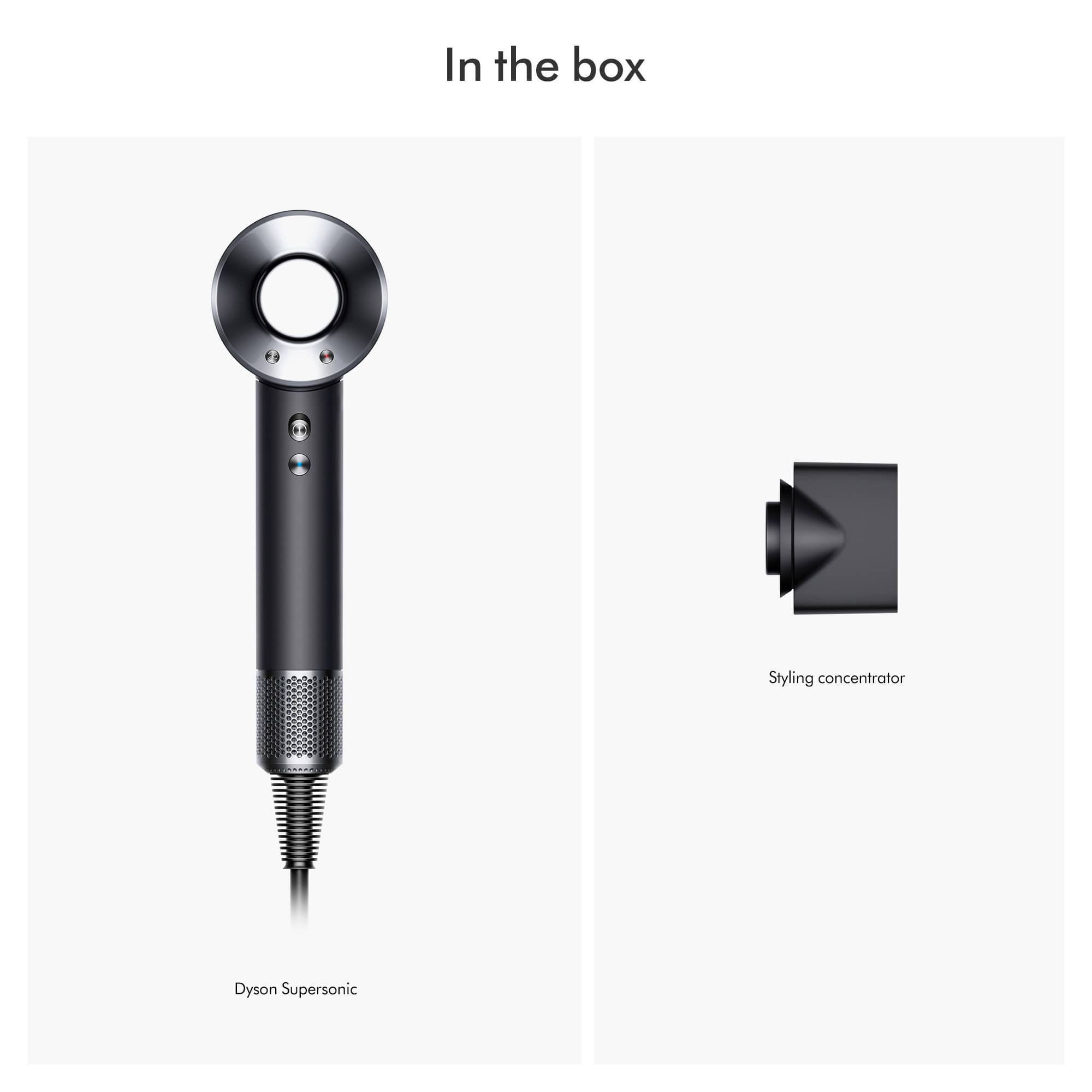 Різниця полягає лише у насадках. У оригінального Supersonic їх п'ять, а у молодшої моделі в комплекті лише одна концентратор для укладання, який дозволяє швидко робити зачіски.
