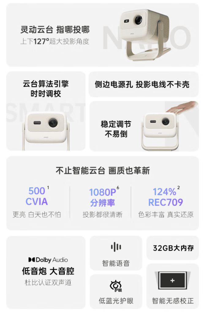 Новий проєктор працює на операційній системі Luna OS 6.0, має 32 ГБ пам'яті, підтримує декодування HDR 10 та бездротове відображення екрану. Він доступний у кремовому варіанті кольору, може бути встановлений в різних сценаріях.