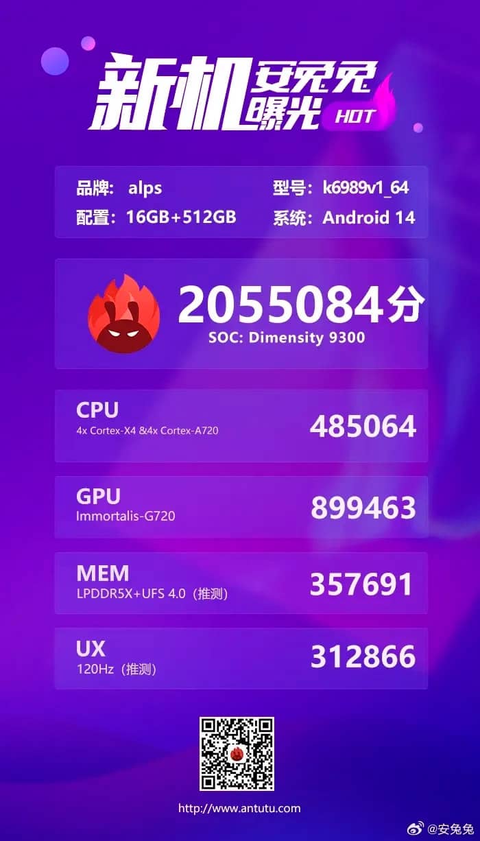 Новий чіп Mediatek Dimensity 9300 з'явився у базі даних AnTuTu. Процесор встановив рекорд продуктивності — 2 055 084 бали.