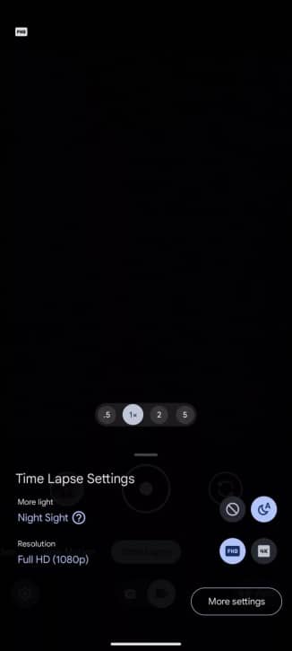 Відео тривалістю 5 хвилин у роздільній здатності 1080p або 20 хвилин у роздільній здатності 4K дадуть таймлапс тривалістю 10 секунд у режимі Night Sight.