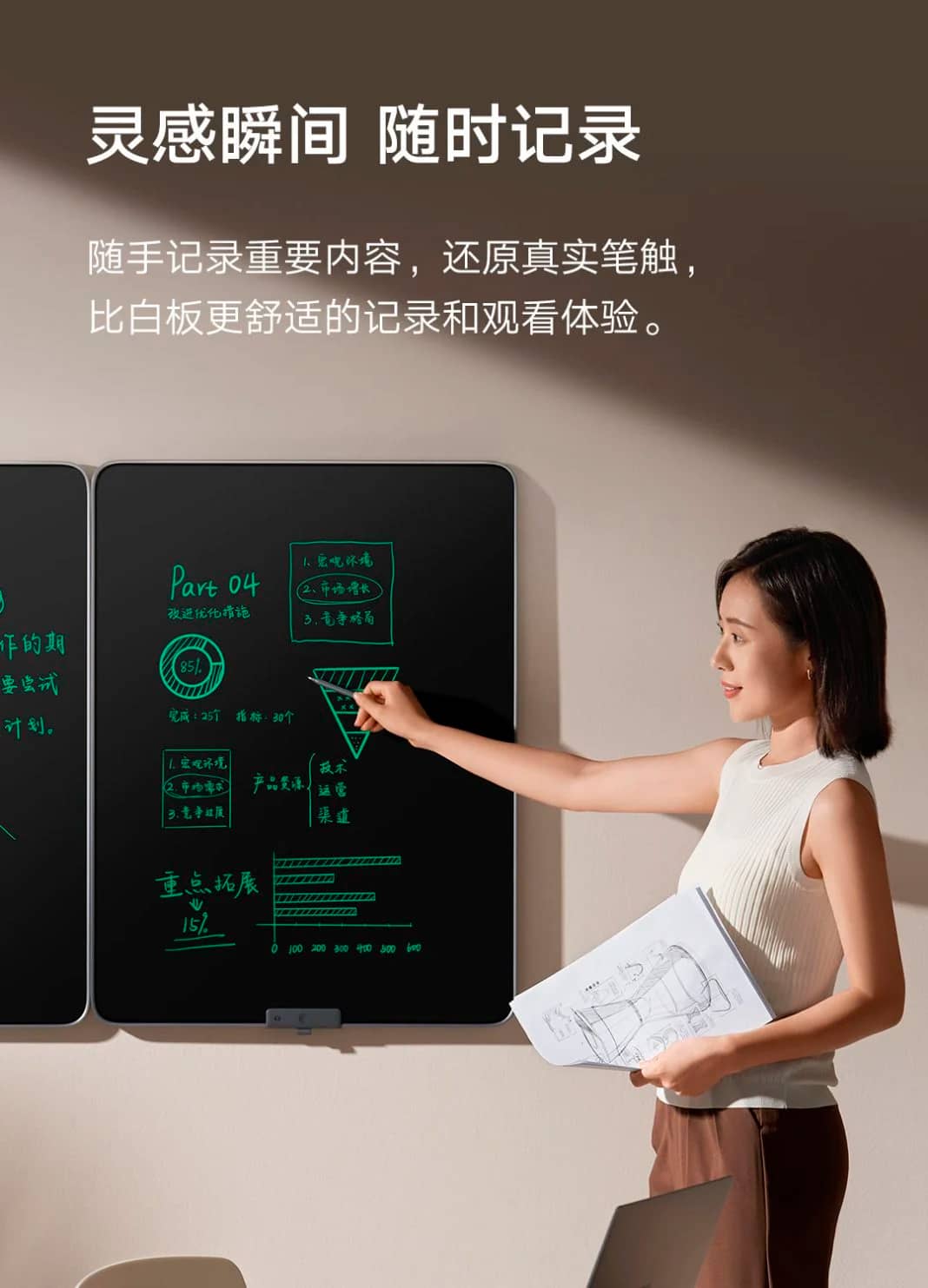 Новинка використовує спеціальну LCD-плівку та не має підсвічування. Натомість вона відображає природне світло для відображення написаного. Функція чутливого до тиску екрана забезпечує плавний та справжній досвід письма, усуває проблеми, пов'язані із забрудненням пилом та плямами від чорнила. Крім того, вона має зручну функцію однокнопкового очищення екрану.