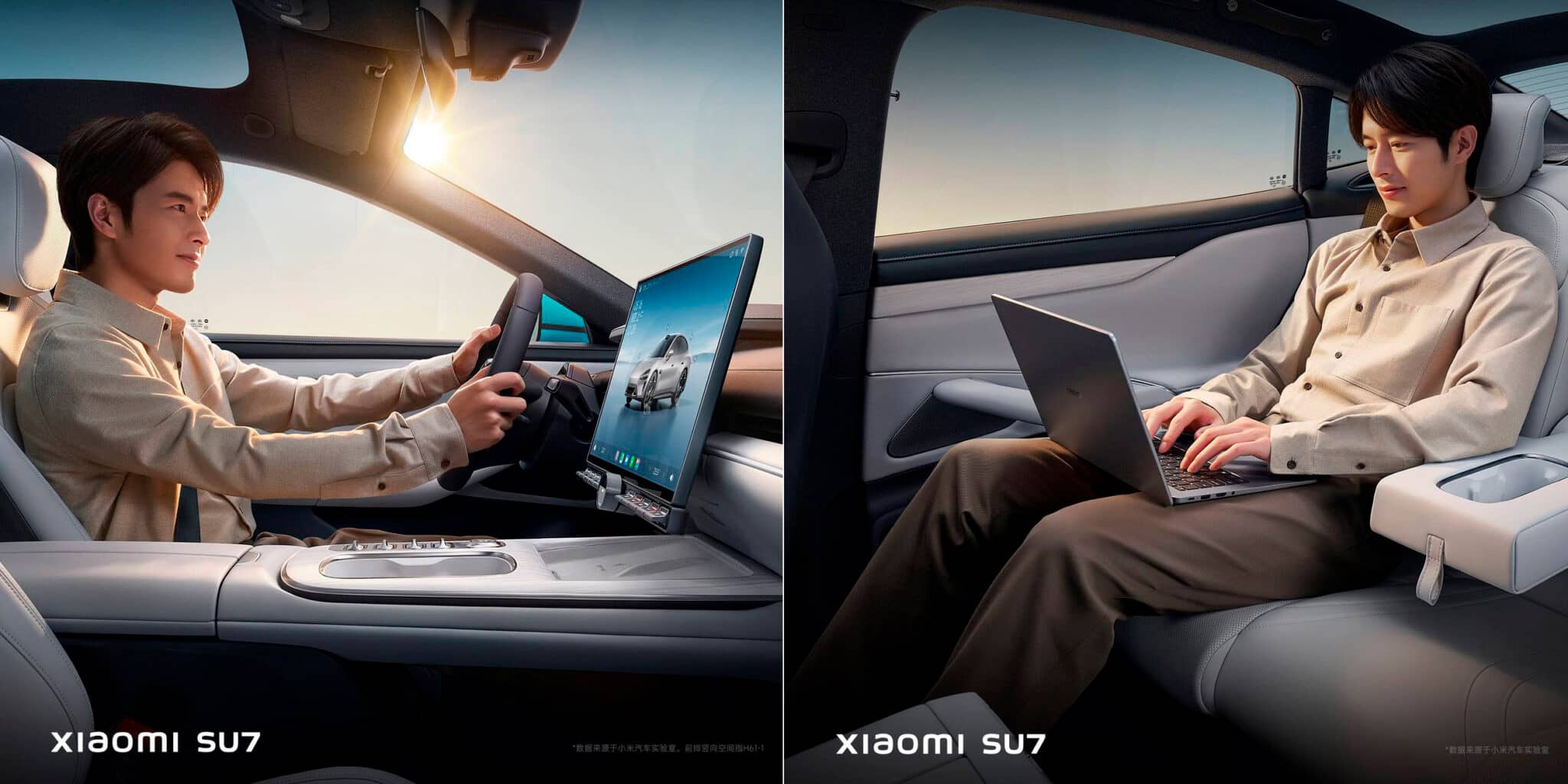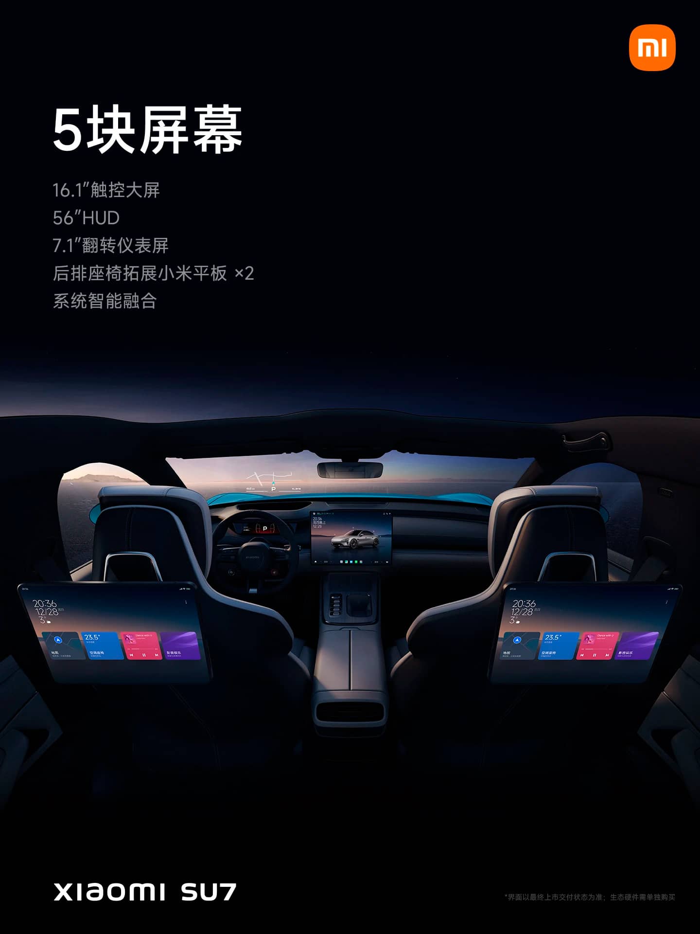 Панель приладів також представлена у вигляді дисплея на 7,1 дюйма. А на лобове скло можна вивести 56-дюймовий інтерфейс HUD. Система підтримує Apple AirPlay та CarPlay, є синхронізація пристроїв на HyperOS, наприклад, смартфона. Для пасажирів позаду сидінь можна закріпити планшети Xiaomi Pad або Apple iPad на узголів'ї передніх сидінь.