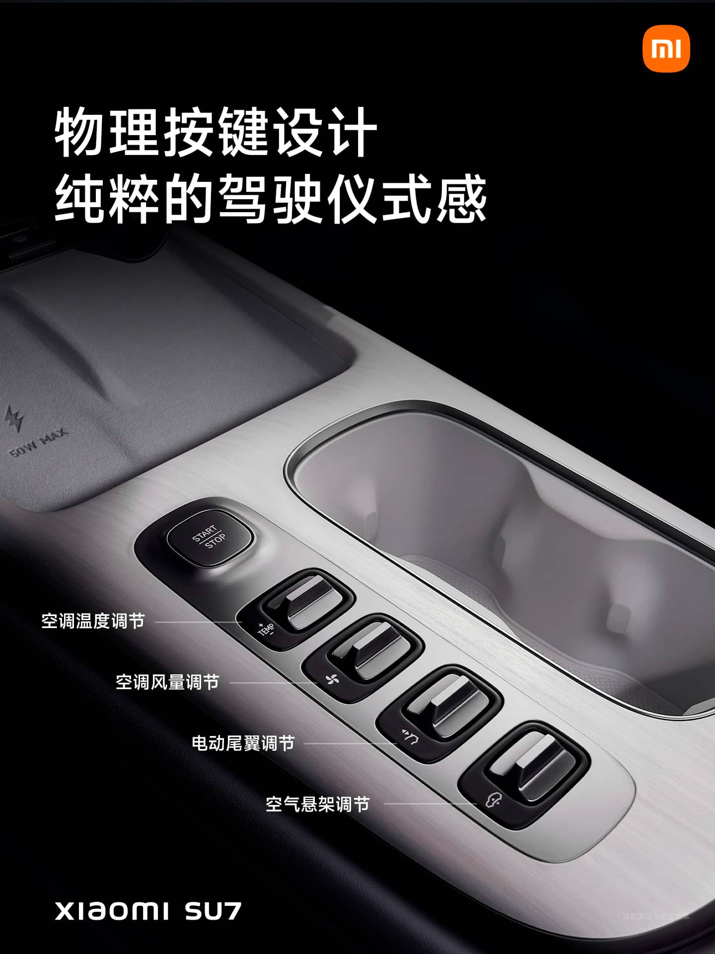 Глава Xiaomi Лей Цзюнь наполягав, щоб регулятори управління кондиціонером, підвіскою та низкою інших параметрів залишалися фізичними — на думку Цзюня, це зручніше за сенсорні інтерфейси.