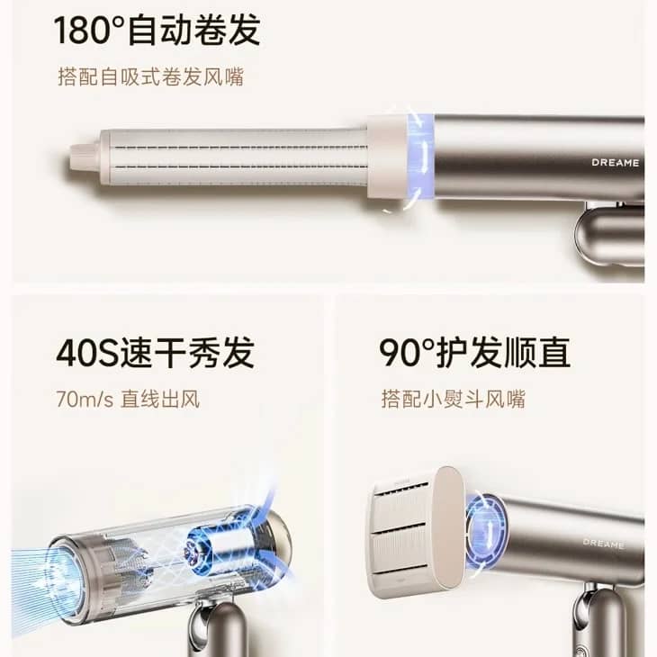 За словами виробника, швидкість повітря за максимальної потужності досягає 70 м/с. Волосся середньої довжини фен здатний висушити за 40 секунд. У секунду фен може виробляти до 300 мільйонів негативних іонів, які захищатимуть волосся від пересушування та ламкості.
