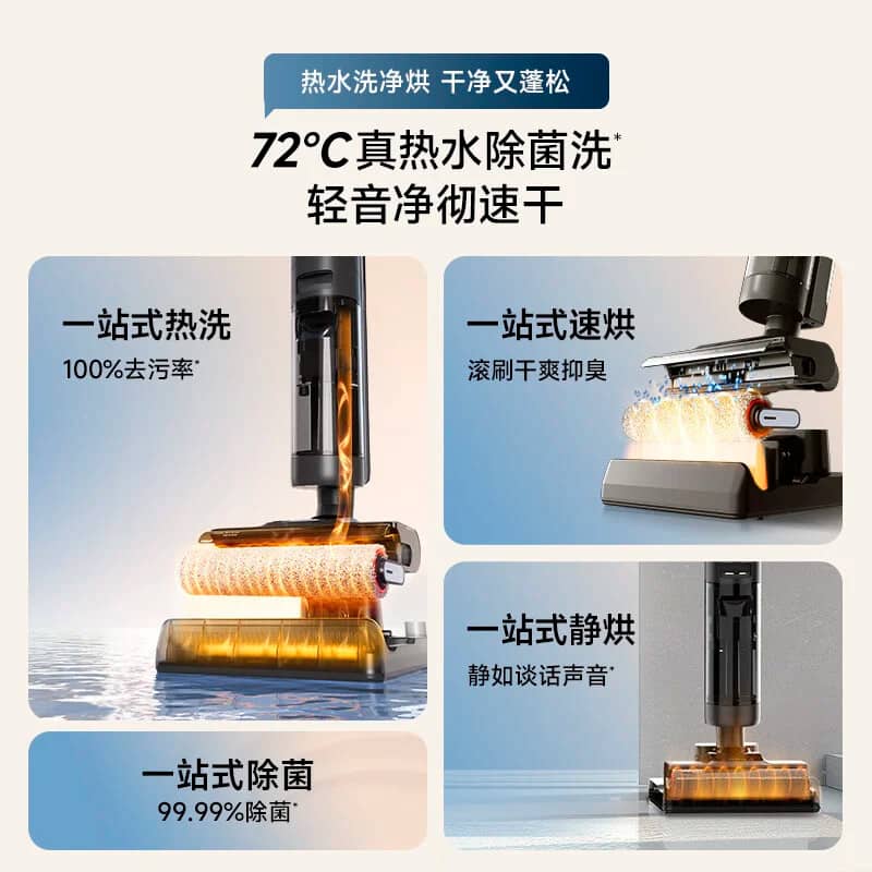 Dreame H2O Super Power Edition використовує гарячу воду з температурою 72°C для стерилізації, що дозволяє ефективно знищувати 99.99% бактерій. Пристрій працює з рівнем шуму 66 дБ.
