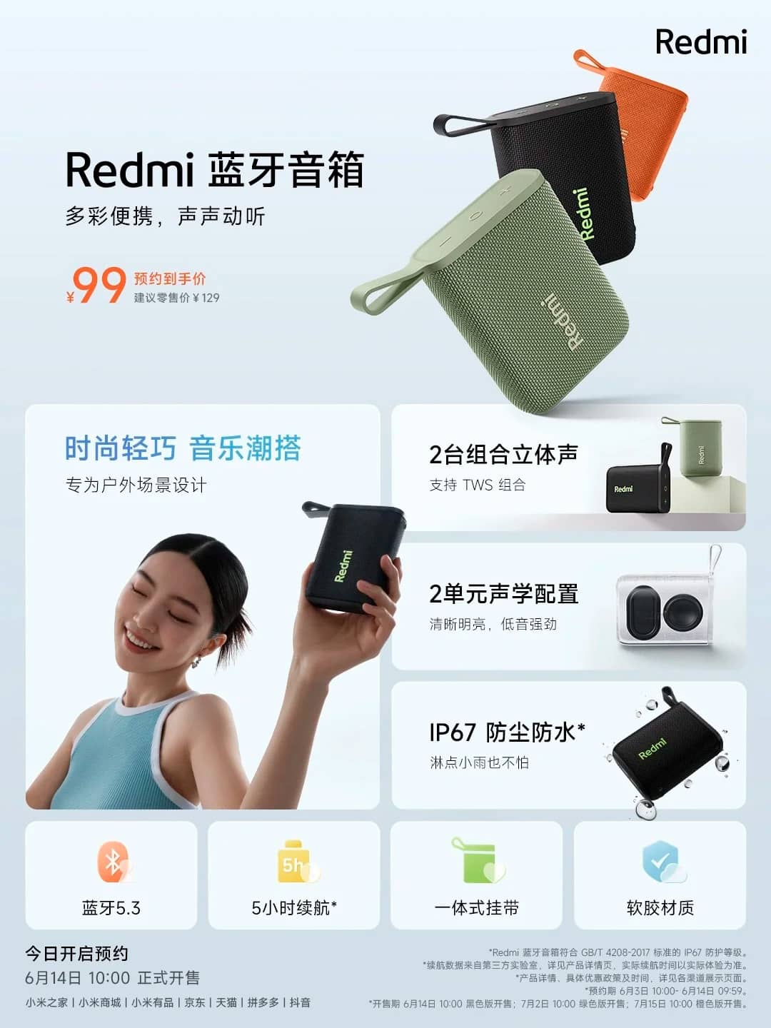 Компактна колонка Redmi буде доступна в чорному, зеленому та оранжевому кольорах. Вони надійдуть у продаж 14 червня, 2 липня та 15 липня відповідно. У Китаї вже стартував прийом передзамовлень. Вартість складає 99 юанів ($14).