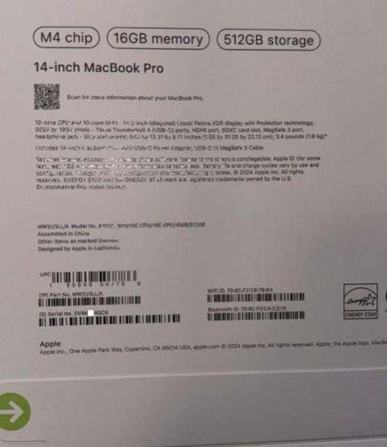 Нещодавня публікація в Twitter від ShrimpApplePro показує упаковку 14-дюймового MacBook Pro з 16 ГБ оперативної пам'яті та 512 ГБ вбудованого накопичувача.