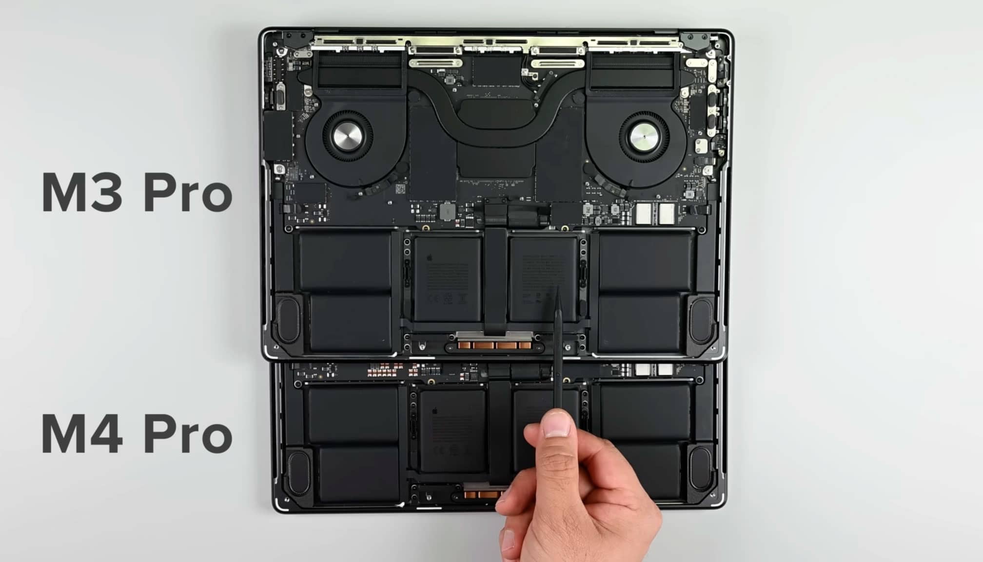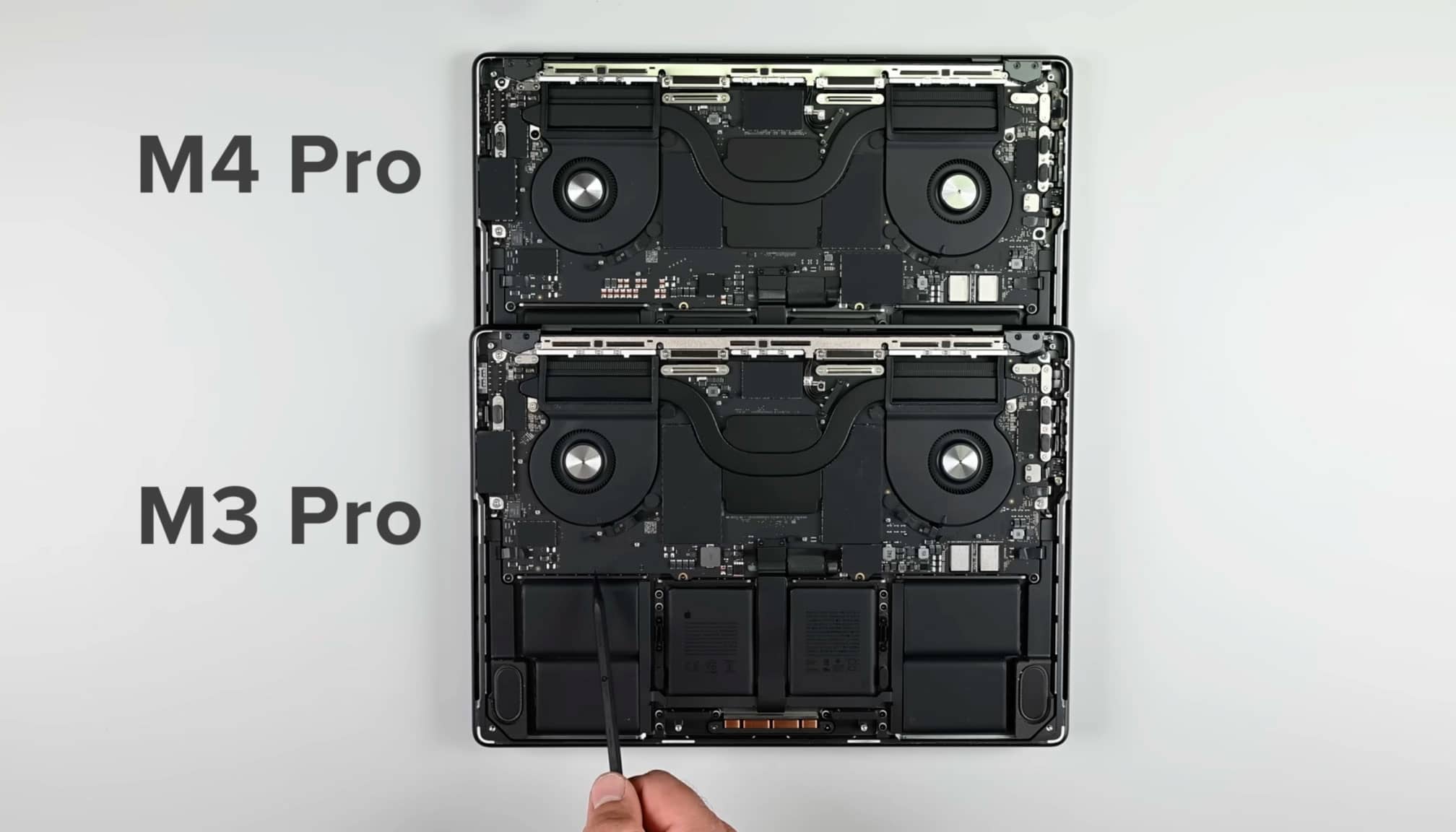 Єдина відмінність від MacBook Pro (M3) — перероблена материнська плата з радіатором, що збільшився, і перерозподіленими компонентами. За винятком цих «тонких відмінностей», решта залишилася незмінною.