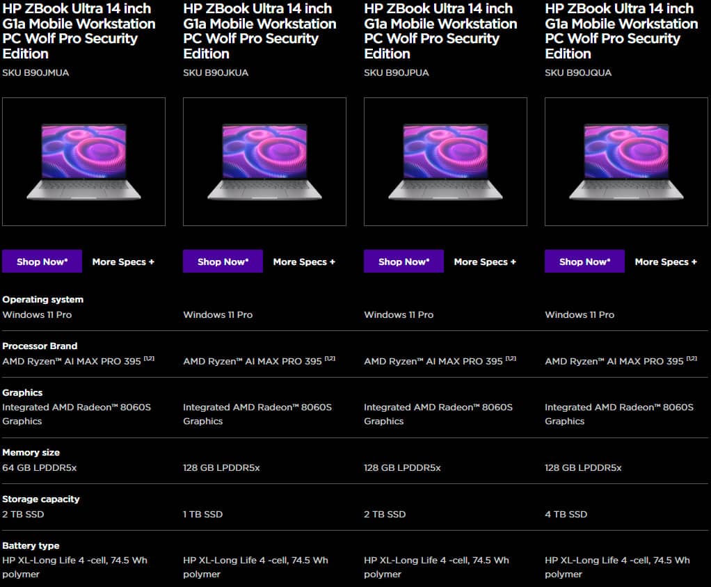 - Ryzen AI Max Pro 395, Radeon 8060S, 128 ГБ LPDDR5X, 4 ТБ SSD — $8250.