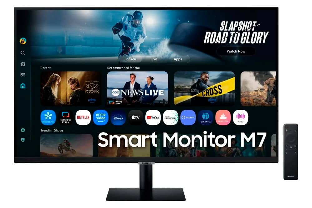 Вбудовані динаміки: 10 Вт у 32-дюймової версії та 20 Вт у 43-дюймової. В обох випадках підтримується Adaptive Sound+. Монітори працюють на Tizen OS та пропонують функції Multi View, Smart Calibration, Tap View, дзеркало екрану, Game Bar та Gaming Hub. Набір портів включає два HDMI 2.0, один USB-C із зарядкою 65 Вт, три USB-A, Wi-Fi 5 та Bluetooth 5.2. M7 оснащений простою підставкою з регулюванням нахилу та використовує внутрішній блок живлення.