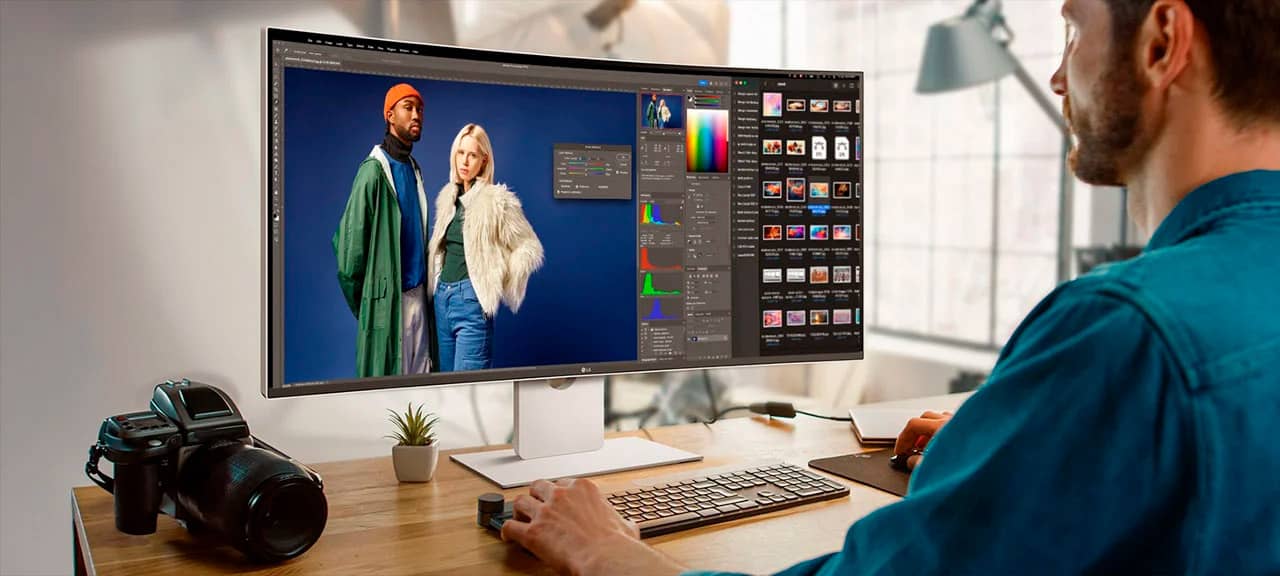 Монітор оснащено вигнутою Nano IPS Black панеллю з радіусом кривизни 2500R, роздільною здатністю 5120 х 2160 пікселів, співвідношення сторін 21:9. Контрастність досягає 2000:1, а охоплення колірного простору DCI-P3 становить 99%. Сертифікація VESA DisplayHDR 600 гарантує яскраве, насичене зображення із глибокими відтінками чорного. Технологія LG Live Color Low Blue Light знижує навантаження на очі без спотворень кольору.