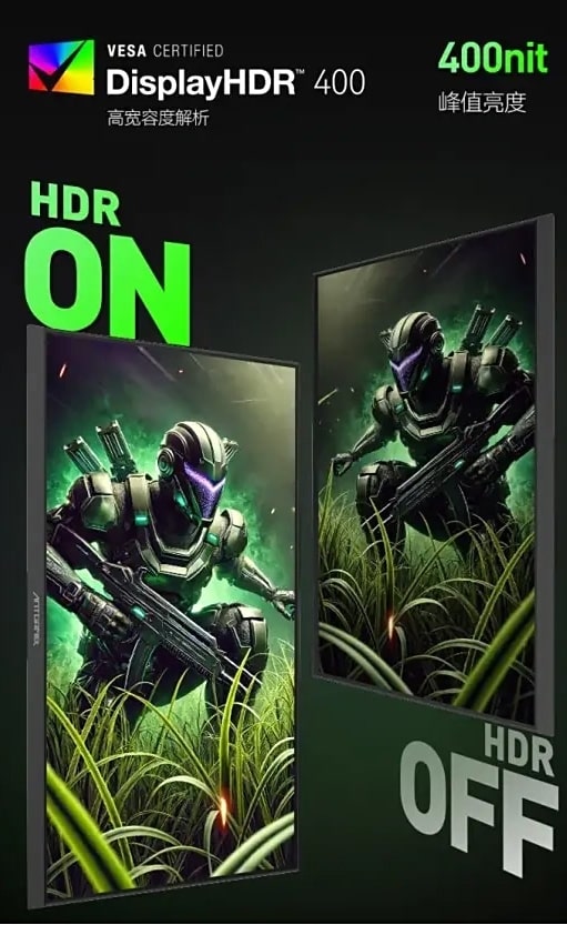 Охоплення кольорових гам: sRGB 99%, DCI-P3 95%. Точність передачі кольору становить Delta E < 2. Є сертифікат VESA HDR 400. Порти HDMI 2.1 і DisplayPort 1.4 доступні для підключення.