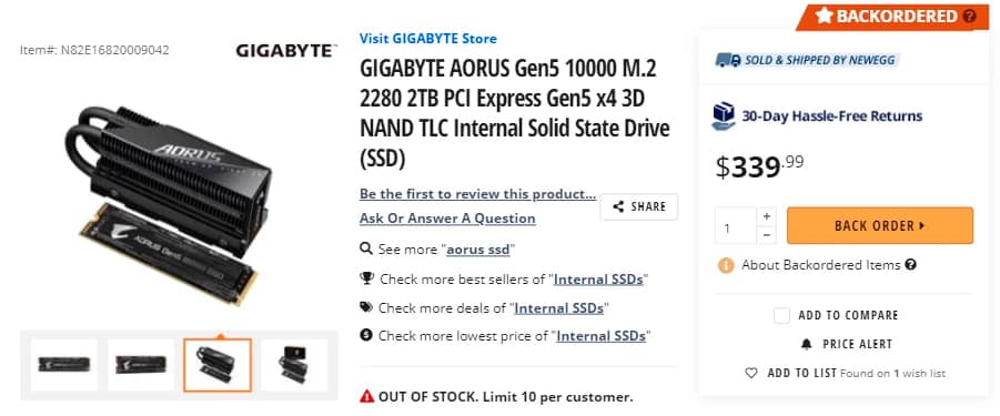 Модель Aorus Gen5 10 000 M.2 на 2 ТБ коштує $339,99. Такий накопичувач забезпечує пікову швидкість читання 10 ГБ/с та швидкість послідовного запису до 9,5 ГБ.
