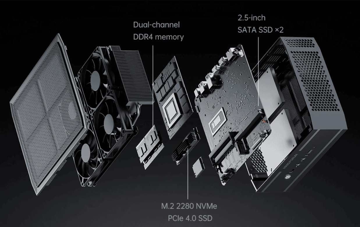 За дизайном новий міні-ПК дуже нагадує модель MINISFORUM NAD9, яку компанія випустила минулого року. Пристрій оснащується 10-ядерним процесором Intel Core i7-12650H з 16 потоками та тактовою частотою 4.7 ГГц.