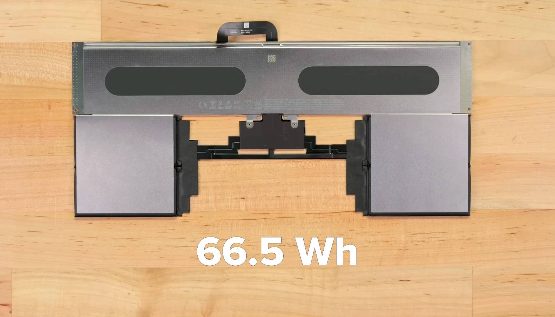 iFixit звернув увагу на додаткові два динаміки (загальна кількість — шість штук) і збільшений акумулятор (66,5 Вт/год проти 52,6 Вт/год). Батарейний блок забезпечений язичками для простоти вилучення, але щоб дістатися до них, доведеться демонтувати кілька інших компонентів.