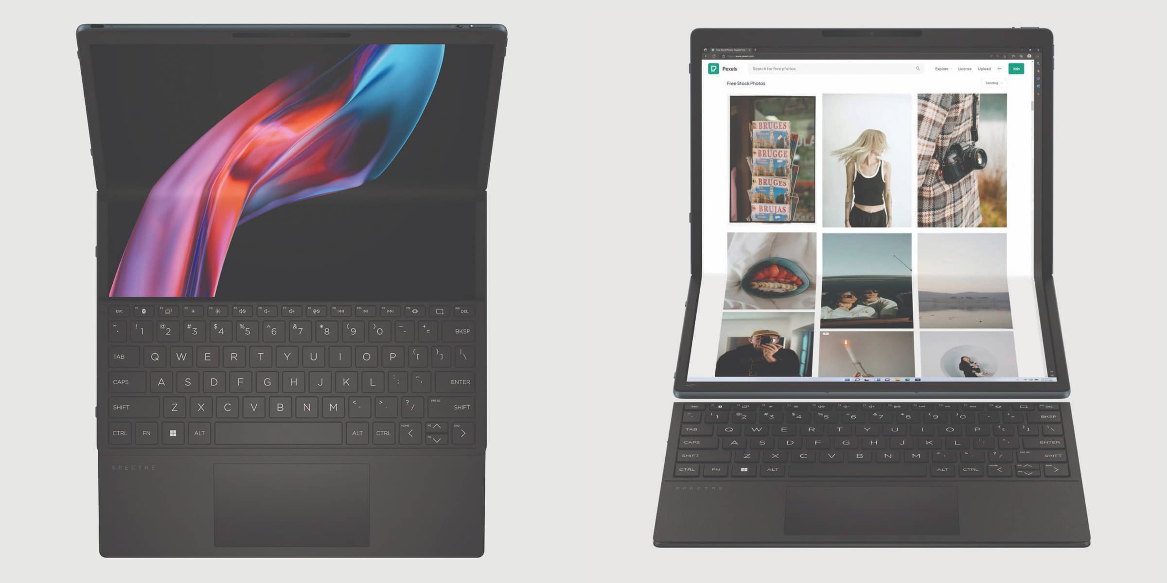 Екран з матрицею OLED видає картинку з роздільною здатністю 2560×1920 пікселів і співвідношенням сторін 4:3. Є сертифікація IMAX Enhanced та можливість використання стілусу. Клавіатура та стилус кріпляться до Spectre за допомогою магнітів та заряджаються без проводів.