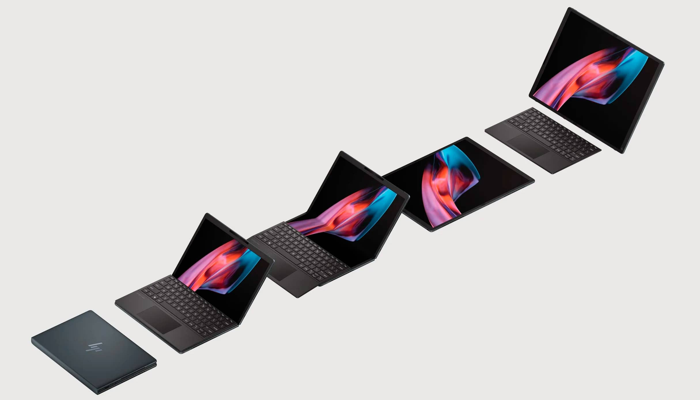 Корпус комп'ютера на 90% виготовлений із переробленого магнію та важить 1,35 кг без урахування клавіатури. З нею вага зростає до 1,62 кг. У розкладеному вигляді розміри становлять 376,1×277,05×8,5 мм. У складеному — 277,05 × 191,31 × 21,4 мм. HP розділила батарею ємністю 93 Втг між двома половинками екрана. Бездротовий зв'язок: Wi-Fi 6E та Bluetooth 5.3.