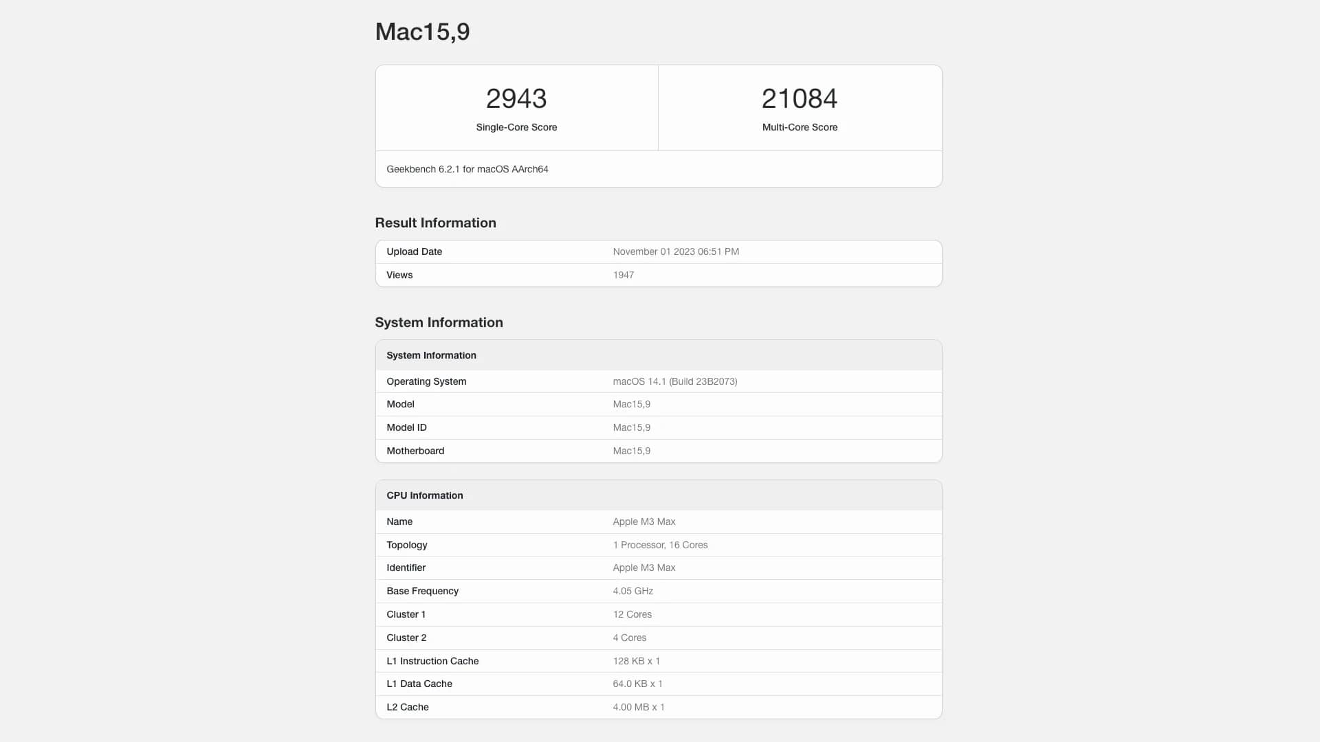 Нагадаємо, Apple M3 Max побудований на 3-нм технології TSMC і включає 16 ядер CPU (12+4) та 40 ядер GPU. Чіп підтримує до 128 ГБ об'єднаної пам'яті. Першими пристроями на базі M3 Max стали MacBook Pro 14" та 16".