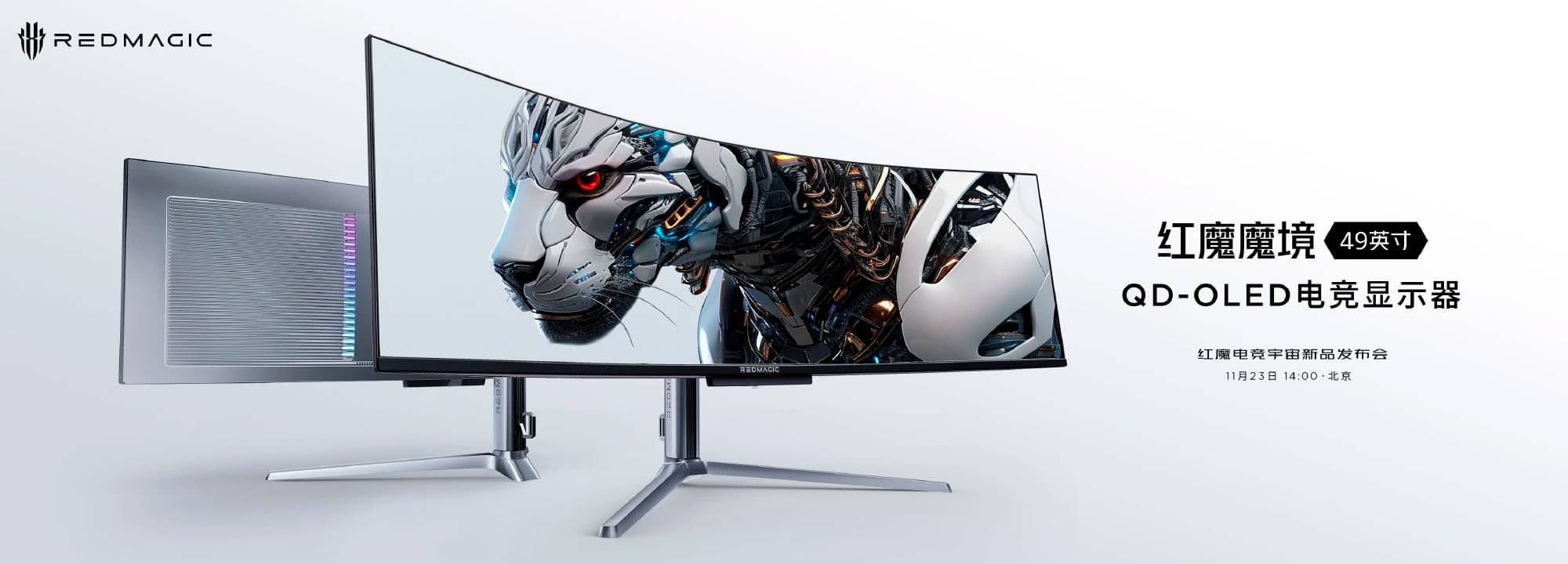 Red Magic також повідомила, що в грудні розпочне продаж флагманського 49-дюймового вигнутого QD-OLED монітора, який був представлений влітку цього року. Новинка підтримує роздільну здатність 5120 x 1440 пікселів, частоту оновлення 240 Гц, а також технології синхронізації зображення AMD FreeSync та NVIDIA G-Sync. Монітор оснащений двома динаміками потужністю по 5 Вт, роз'ємом 3,5 мм для гарнітури, портами HDMI 2.1 та DisplayPort 1.4, а також одним USB-C, здатним передавати на зовнішній пристрій до 90 Вт потужності.