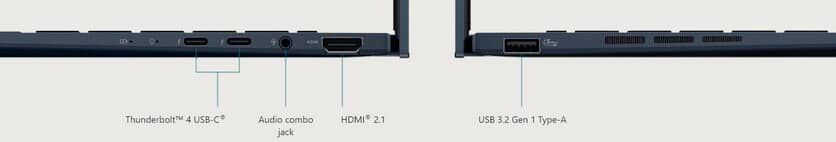 Для підключення передбачена пара Thunderbolt 4 (USB Type-C), роз'єм HDMI 2.1, один порт USB 3.2 Gen 1 (Type-A) та комбінований аудіороз'єм, а також підтримка Wi-Fi 6E та Bluetooth 5.3. За живлення ноутбука відповідає АКБ на 75 Втг, яка, за словами компанії, забезпечує до 15 годин роботи пристрою на повному заряді. Потужність зарядки, що підтримується, становить 65 Вт.