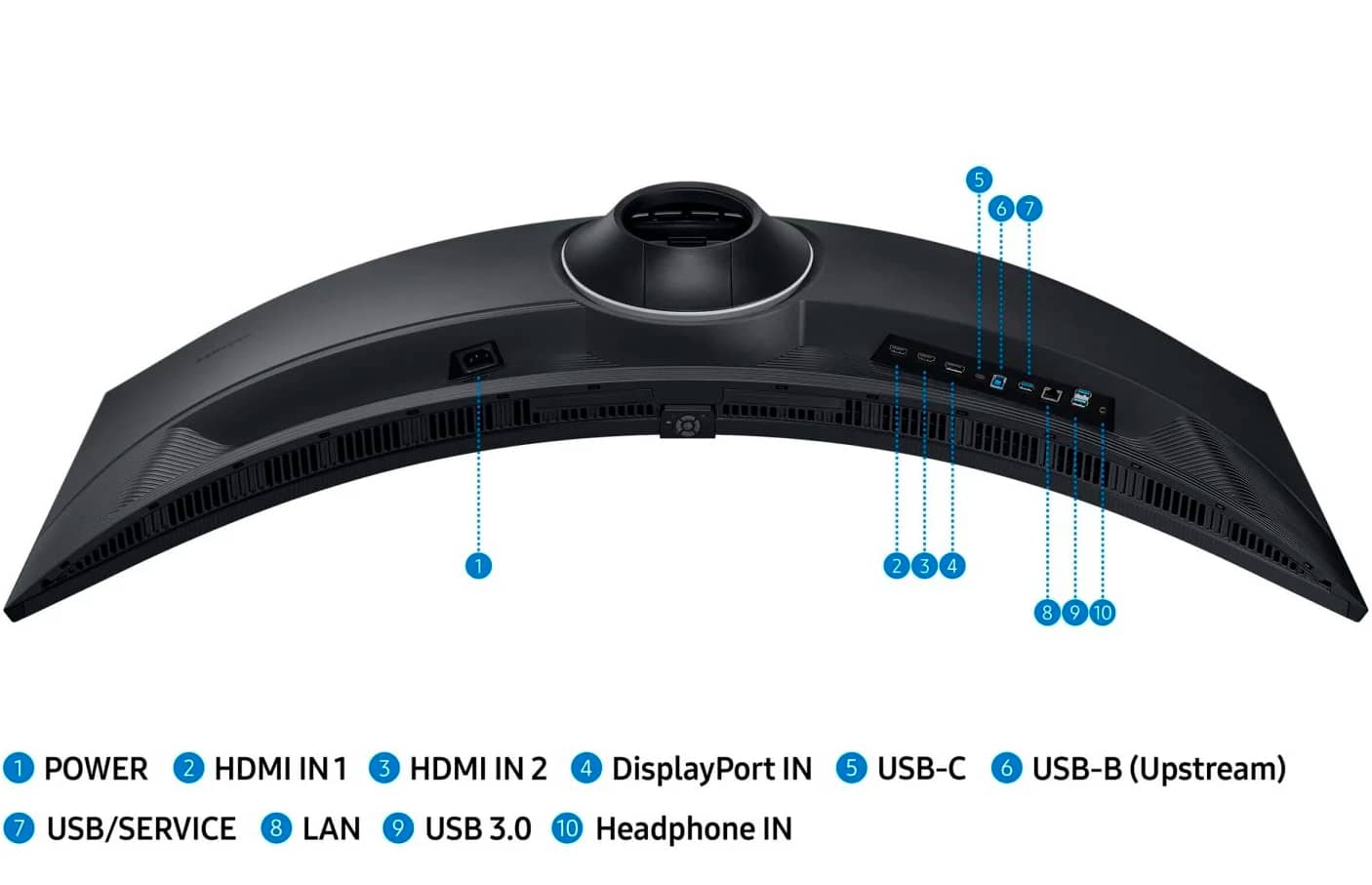 Монітор отримав 2 порти HDMI 2.0, 1 порт DisplayPort 1.4, 3 порти USB Type-A 3.0. Порт USB Type-C надає вихідну потужність 90 Вт.