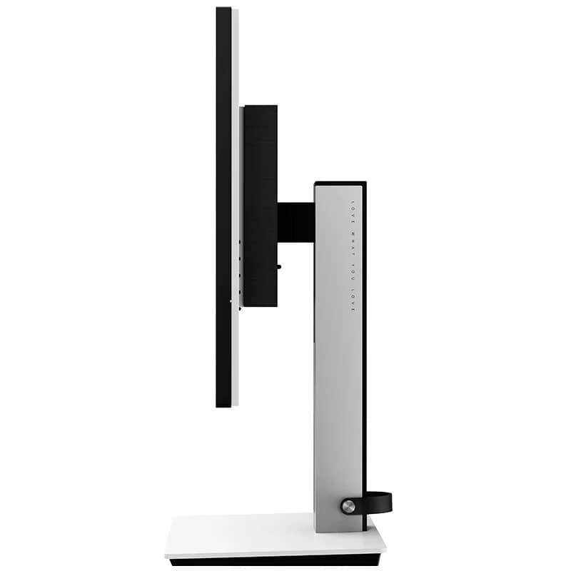 Монітор має ергономічний дизайн з чорно-білим корпусом, прикрашеним стильним геометричним візерунком. Він оснащується багатофункціональною регульованою підставкою, яка підтримує монтаж на стіну VESA.