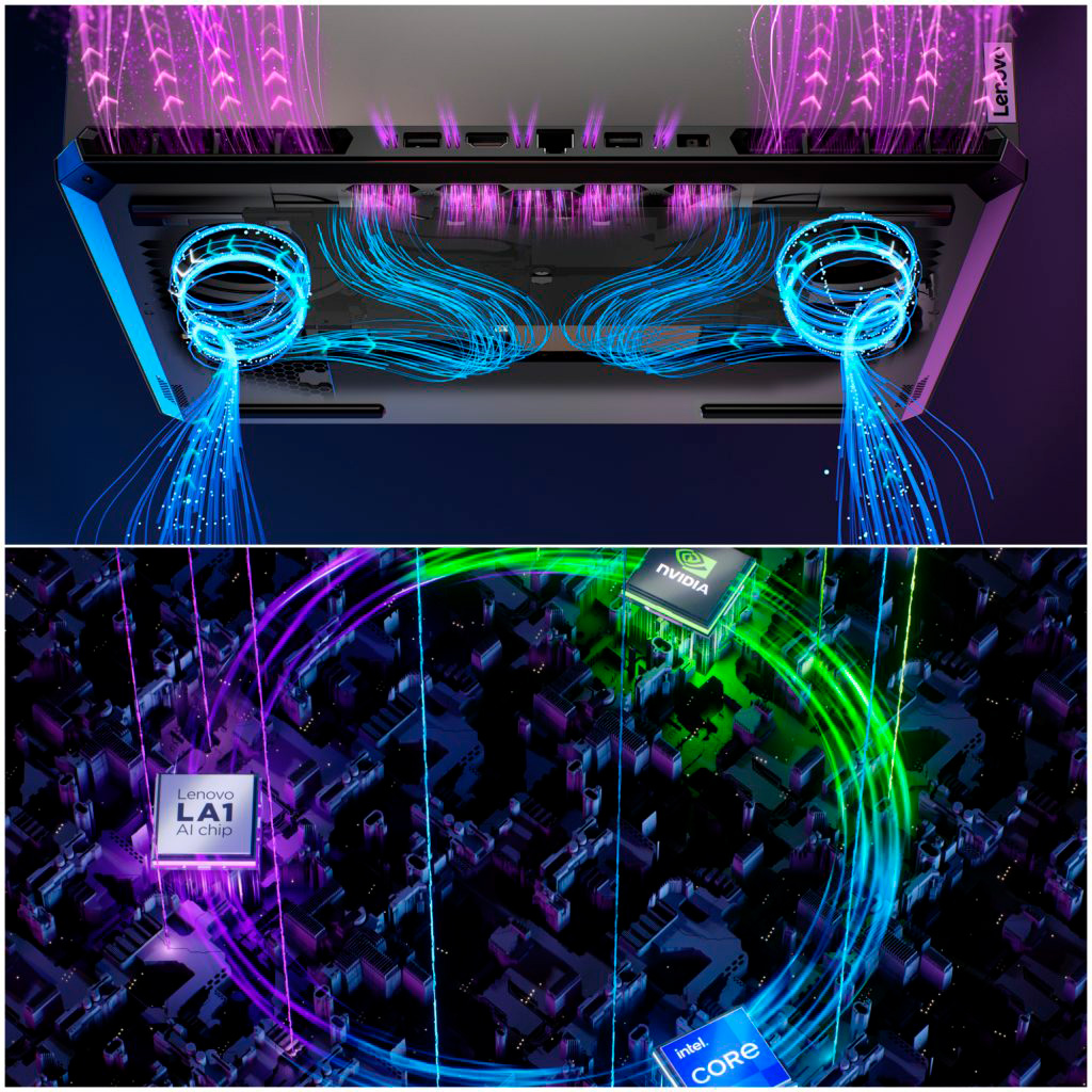 У ноутбуці компанія застосувала технологію Hyperchamber, яка збільшує на 15 Вт TDP системи у режимі роботи Extreme Mode та зменшує температуру корпусу на 2 °C та шум на 2 дБ, якщо порівнювати з рішеннями у минулих ноутбуках компанії. Також є просторовий звук SteelSeries Nahimic, клавіатура з RGB-підсвічуванням та ходом клавіш у 1,5 мм. З інших параметрів заявлена батарея на 60 Втг, нейропроцесор Lenovo LA AI і двигун AI Engine+.