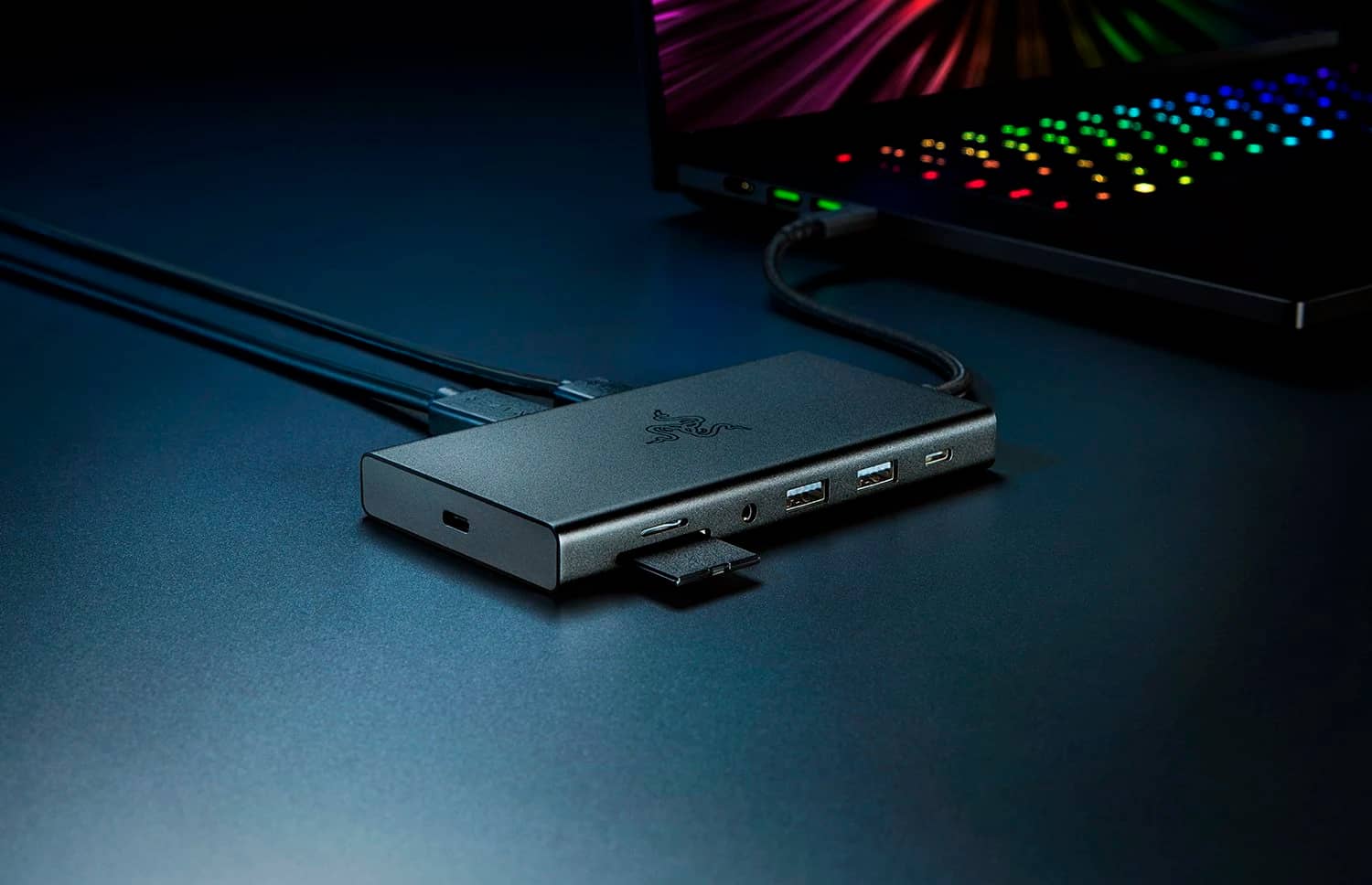 Razer також показала док-станцію в алюмінієвому корпусі з 11 портами, включаючи два USB Type-C, чотири USB Type-A, Ethernet, HDMI, слоти для карток SD UHS-1 та microSD, а також 3,5 мм.