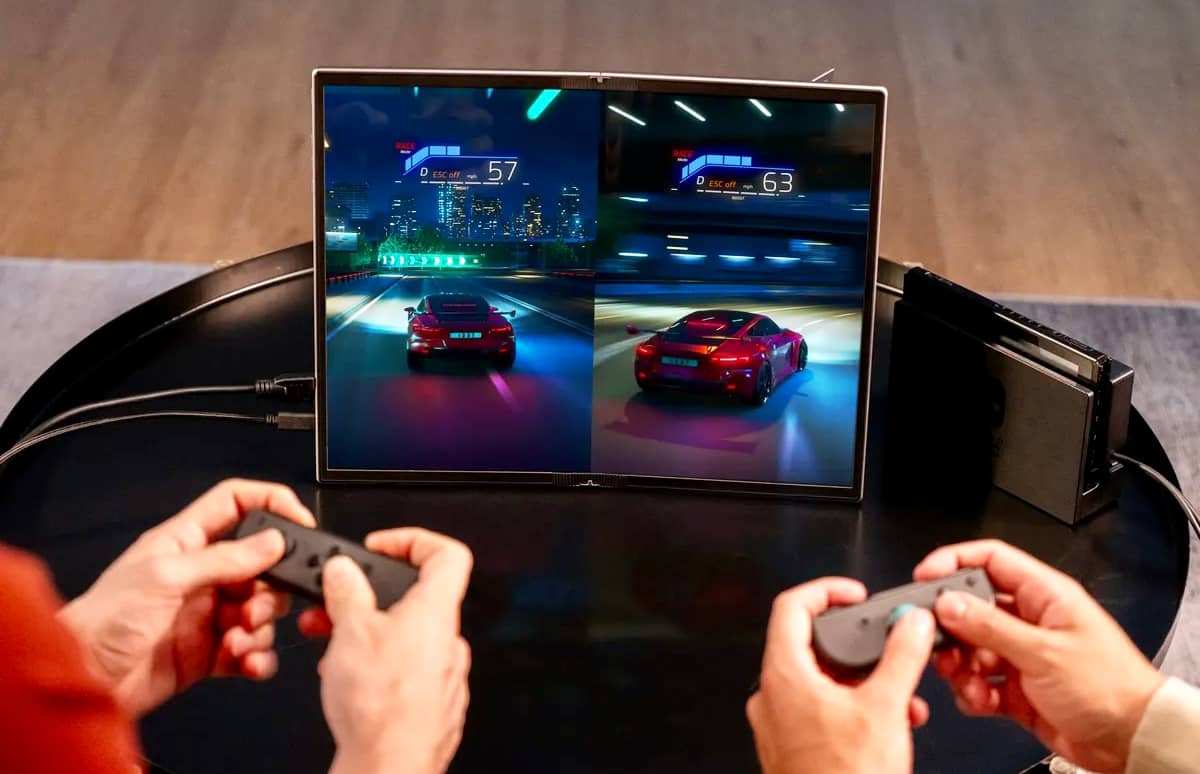 Asus ZenScreen Fold оснащений гнучким 17,3-дюймовим екраном з роздільною здатністю 2560x1920 пікселів, охопленням 100% колірного простору DCI-P3 і сертифікацією DisplayHDR True Black 500. Його шарнір має форму краплі.