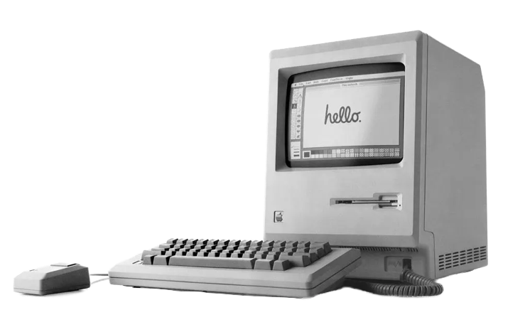 Apple Macintosh став першим персональним комп'ютером з графічним інтерфейсом користувача і управлінням за допомогою мишки. На той момент це був справжній прорив. На комплектній клавіатурі були відсутні стрілочки навігації, кнопка Сtrl та цифровий блок. Це було зроблено, щоб змусити розробників софту робити програми спеціально для нового інтерфейсу користувача. У наступних версіях усі кнопки повернулися на клавіатуру.