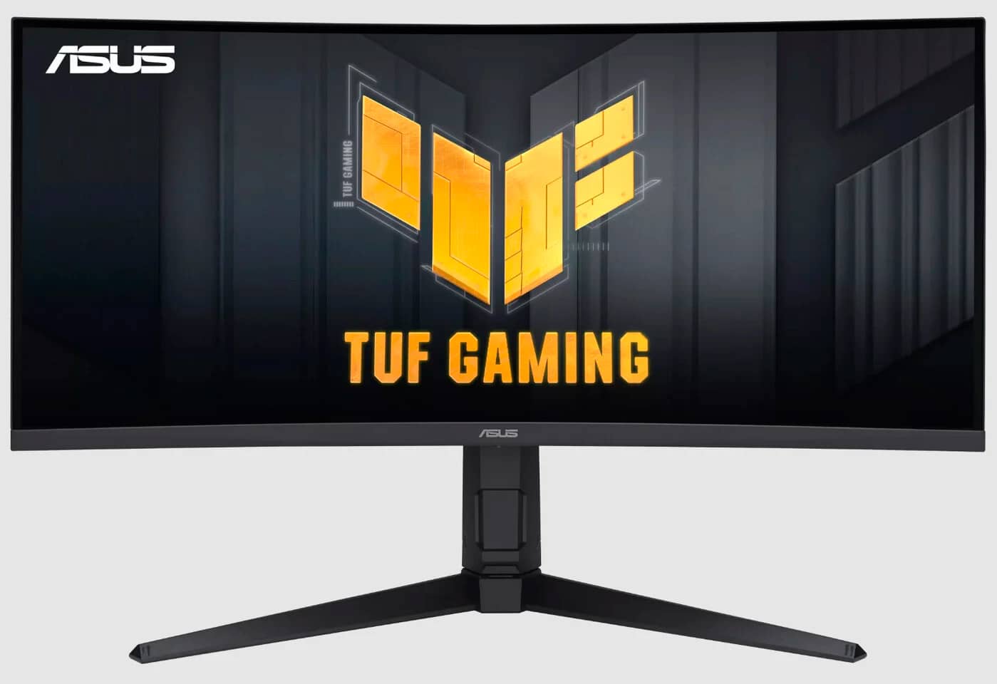 Asus TUF Gaming 34 оснащено 34-дюймовим екраном Ultra Wide QHD (2K) HVA з вигнутістю 1500R, частотою оновлення 180 Гц, часом відгуку 1 мс GTG, технологіями Asus Extreme Low Motion Blur (ELMB) та AMD FreeSync Premium Pro для ігор без розривів, технологією DisplayHDR 400, контрастністю 4000:1, підтримкою формату HDR10, охопленням 125% кольорової гами sRGB.