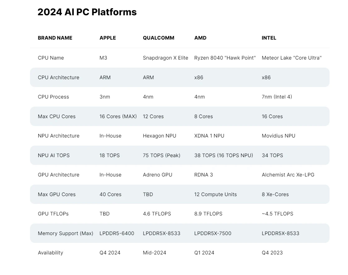 Snapdragon X Elite має скласти конкуренцію актуальним процесорам AMD та Intel, а в деяких моментах навіть їх перевершуватиме. Зокрема, для процесора Qualcomm заявлено продуктивність в AI-завданнях до 75 TOPS. Для порівняння, у чіпів серії Ryzen 8040 (Hawk Point) лише 38 TOPS.