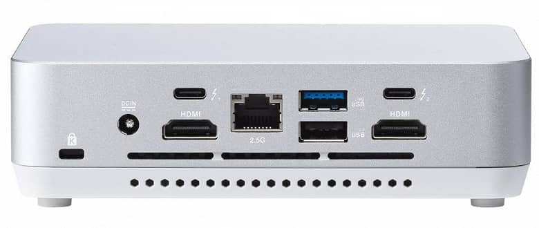 Asus NUC 14 Pro+ має 2 слоти SO-DIMM для встановлення оперативної пам'яті DDR5-5600 (до 96 ГБ), роз'єми M.2 2280 та M.2 2242, адаптер Intel AX211, що забезпечує бездротовий зв'язок Wi-Fi 6E та Bluetooth 5.3. На тильній панелі є 2 порти USB-C з інтерфейсом Thunderbolt 4, 2 порти HDMI 2.1, USB 3.2 Gen 2 Type-A, USB 2.0 Type-A та RJ-45.