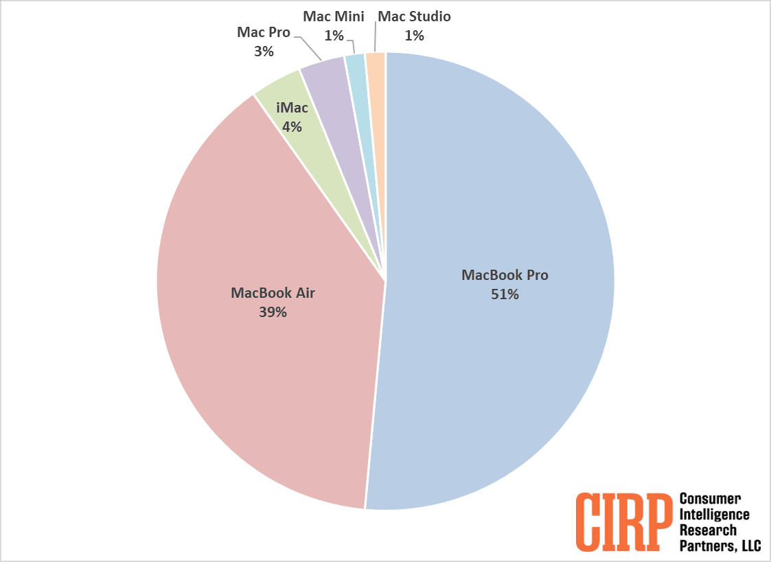 Виявилося, що приблизно половина всіх продажів (51%) посідає на різні моделі MacBook Pro. Відповідно, покупці вважають за краще вибирати більш дорогі та продуктивні ноутбуки.