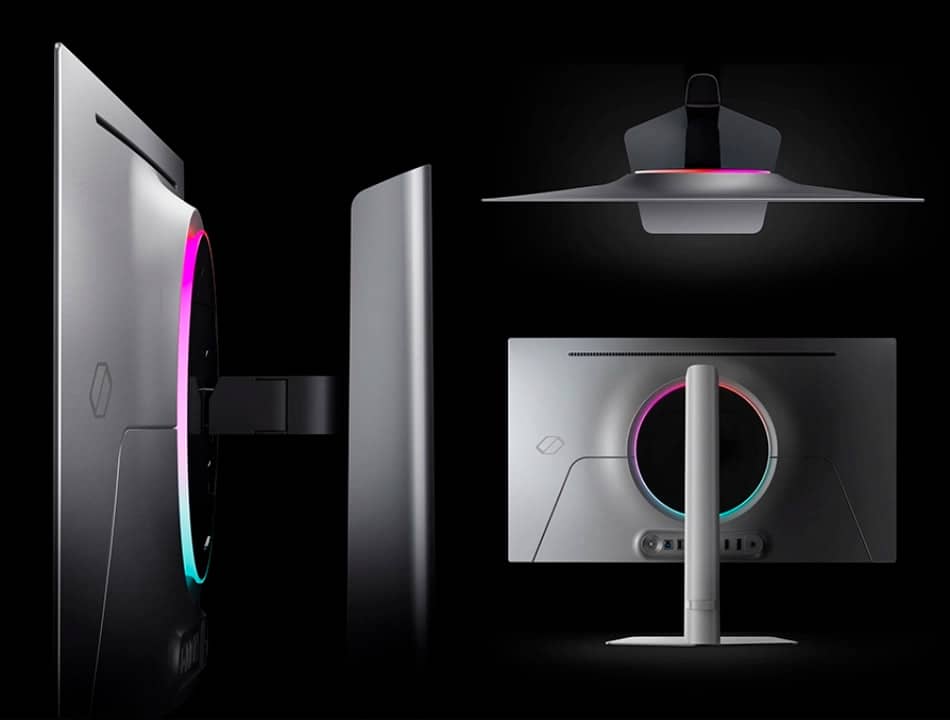 Монітор має елегантний, ультратонкий дизайн з покриттям антивідблиску і кільцем, що настроюється, з підсвічуванням на задній панелі. Опції підключення включають два порти HDMI 2.1, один порт DP 1.4 та два порти USB 3.0.