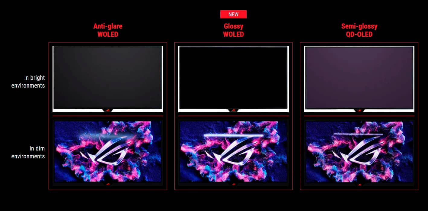 Матриця забезпечує охоплення 99% колірного простору DCI-P3. Час відгуку — 0,03 мс. Новинка отримала сертифікат DisplayHDR True Black 400, підтримку NVIDIA G-SYNC та захист зору ROG OLED Anti-Flicker. Підключати пристрої можна за допомогою роз'ємів HDMI 2.1 та DisplayPort 1.4.