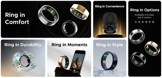 Додаткові функції включають управління за допомогою сенсорного торкання, фотографування жестами, заробляння цифрових нагород boAt Coins за досягнення у фітнесі, участь у глобальних фітнес-челенджах та AR-вид для візуалізації даних про здоров'я в реальному часі. Кільце пропонує захист від пилу, поту та бризок за стандартом 5ATM.