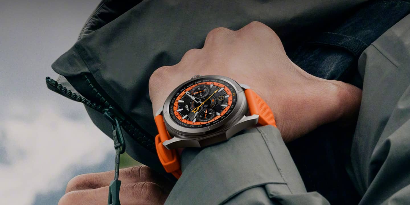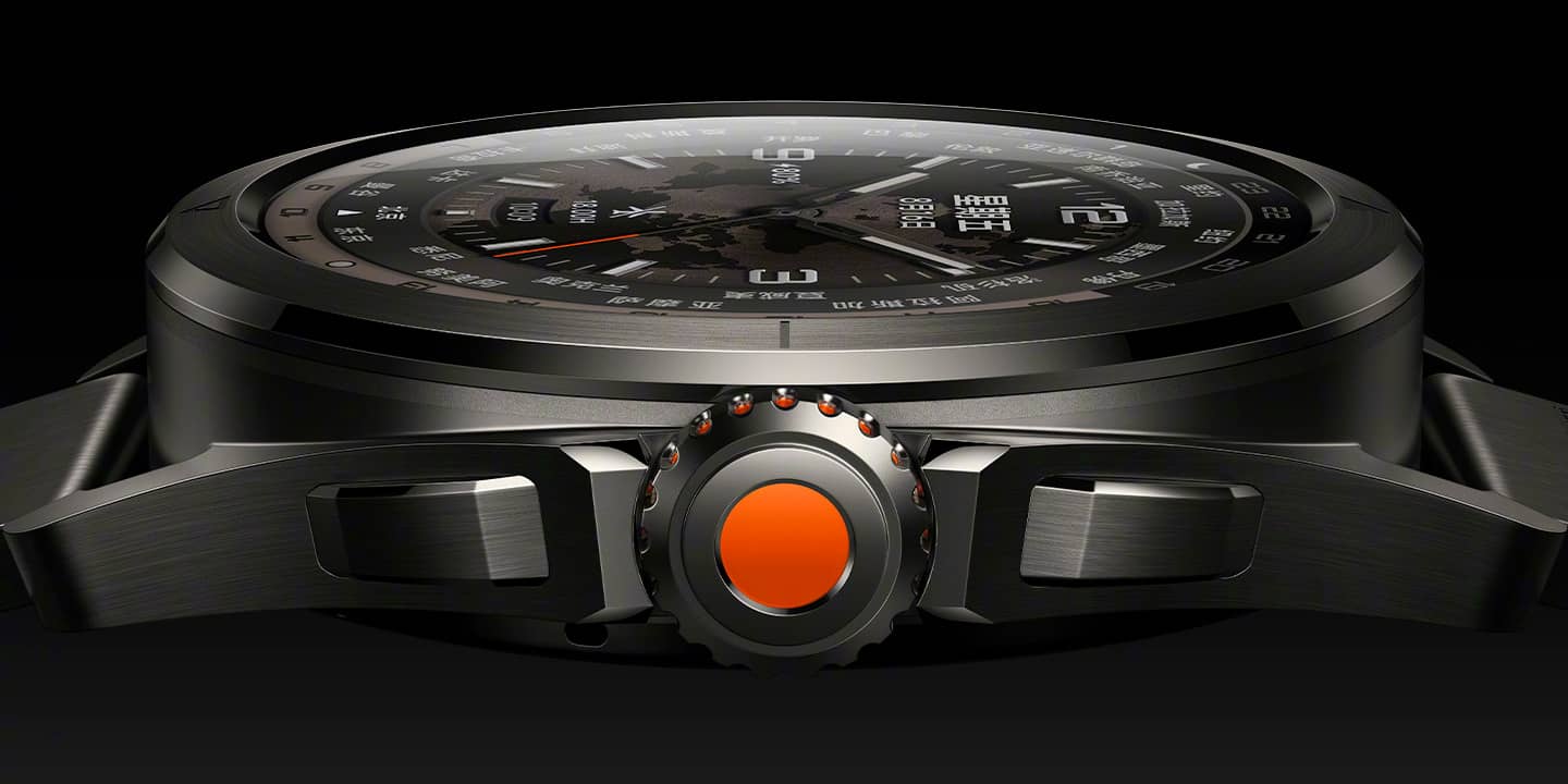 Носимий пристрій отримав титановий корпус з сапфіровим склом і помаранчевим безелем. Годинник оснащений 1,43-дюймовим AMOLED-дисплеєм зі збільшеною до 2200 ніт яскравістю. Поруч із заводною головкою є дві кнопки.