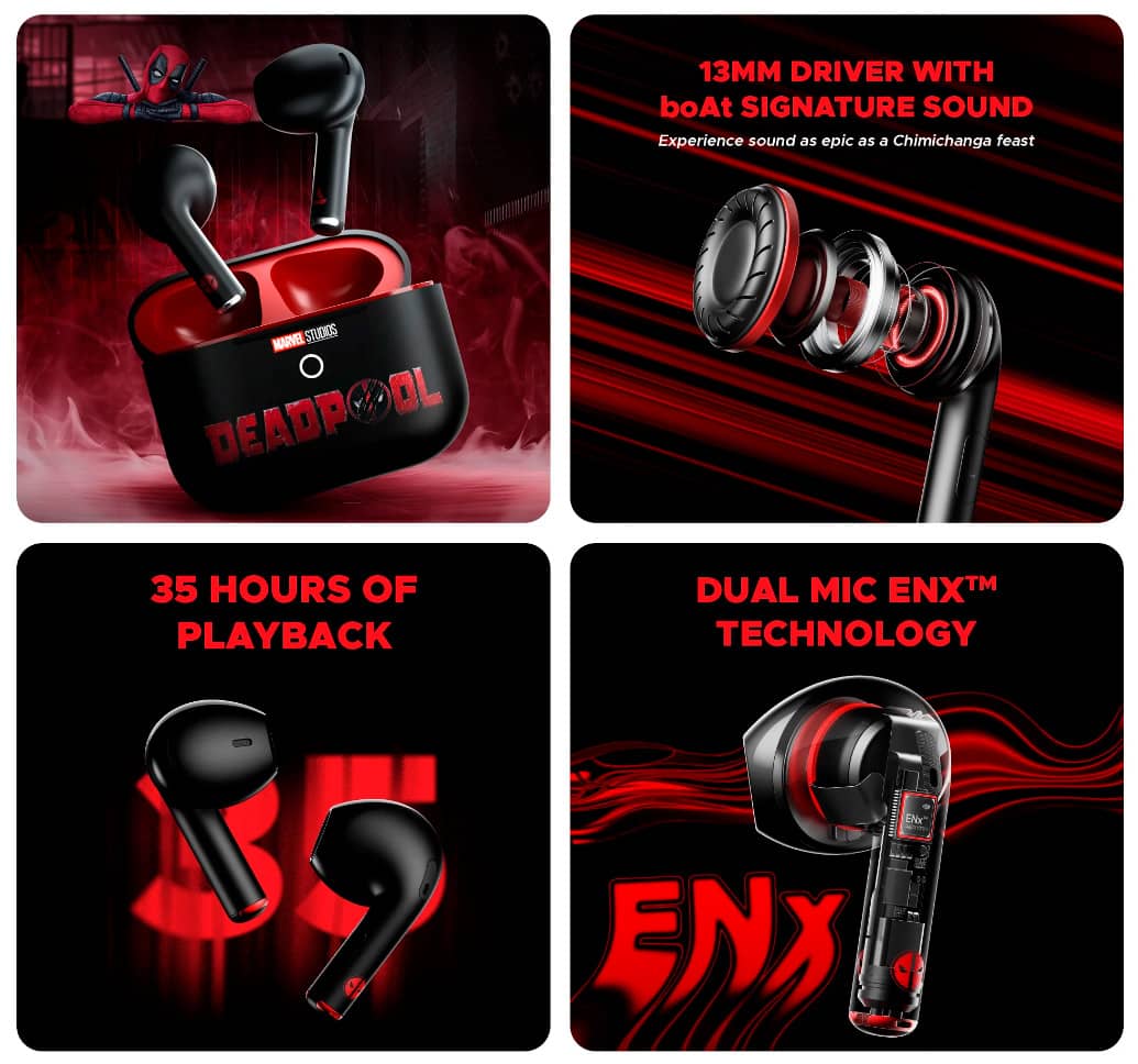 Індійський виробник електроніки Boat приєднався до шанувальників Дедпула та Росомахи, випустивши TWS-навушники Airdopes Alpha Deadpool Edition.