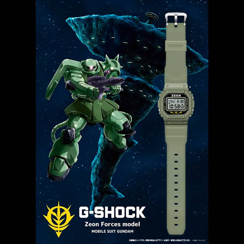 Пристрій виявився результатом співпраці CASIO та Gundam Fan Club, він називається Gundam Fan Club Exclusive G-SHOCK Principality of Zeon Model. Годинник виконаний в елегантному чорному кольорі з червоними та жовтими акцентами, що нагадують кольори армії Зеона. Безель прикрашений емблемою Зеона, символом військової могутності князівства.