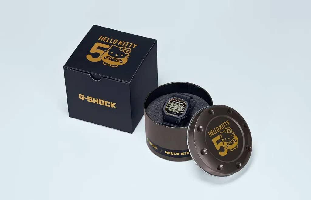 Пристрій випущено на честь відзначення 50-річчя G-Shock. Новинка зберігає відомий стиль серії DW-5600, але додає елементи Hello Kitty, включаючи бантик, що світиться, і спеціальну задню кришку корпусу на честь ювілею.