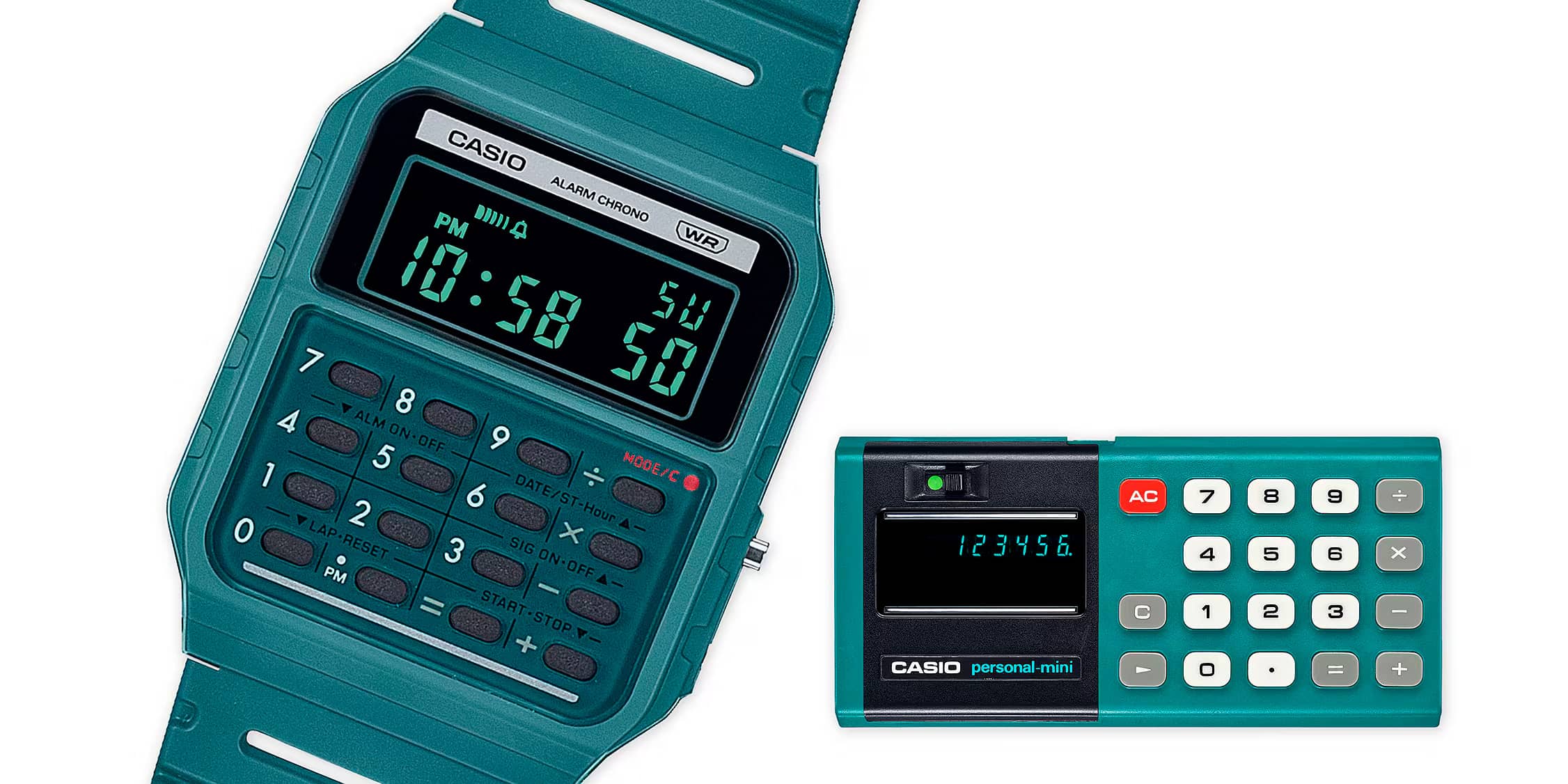 Головна особливість новинки полягає в тому, що вона оснащена вбудованим калькулятором, виконаним у стилі Casio Mini 1972 випуску.