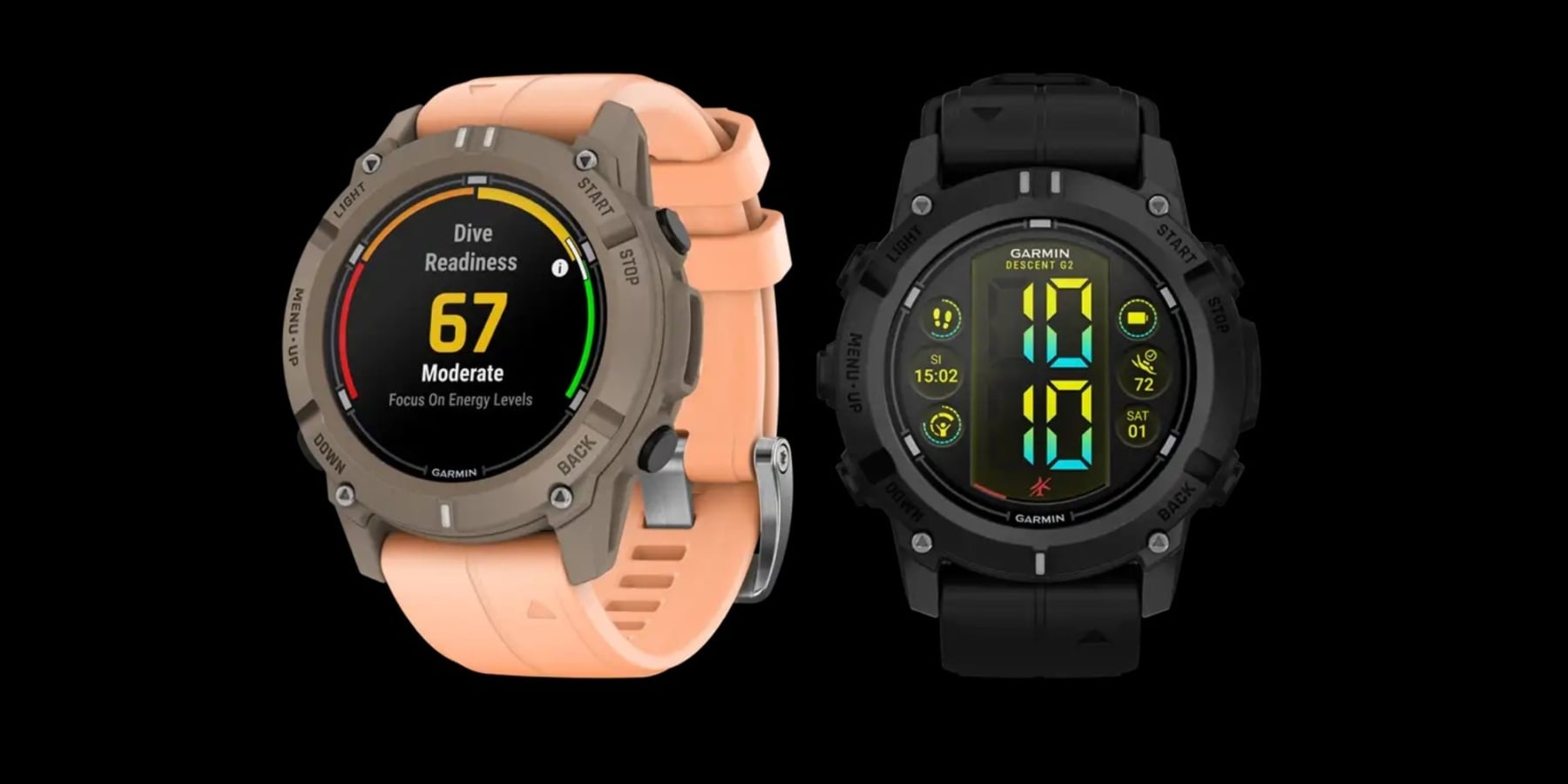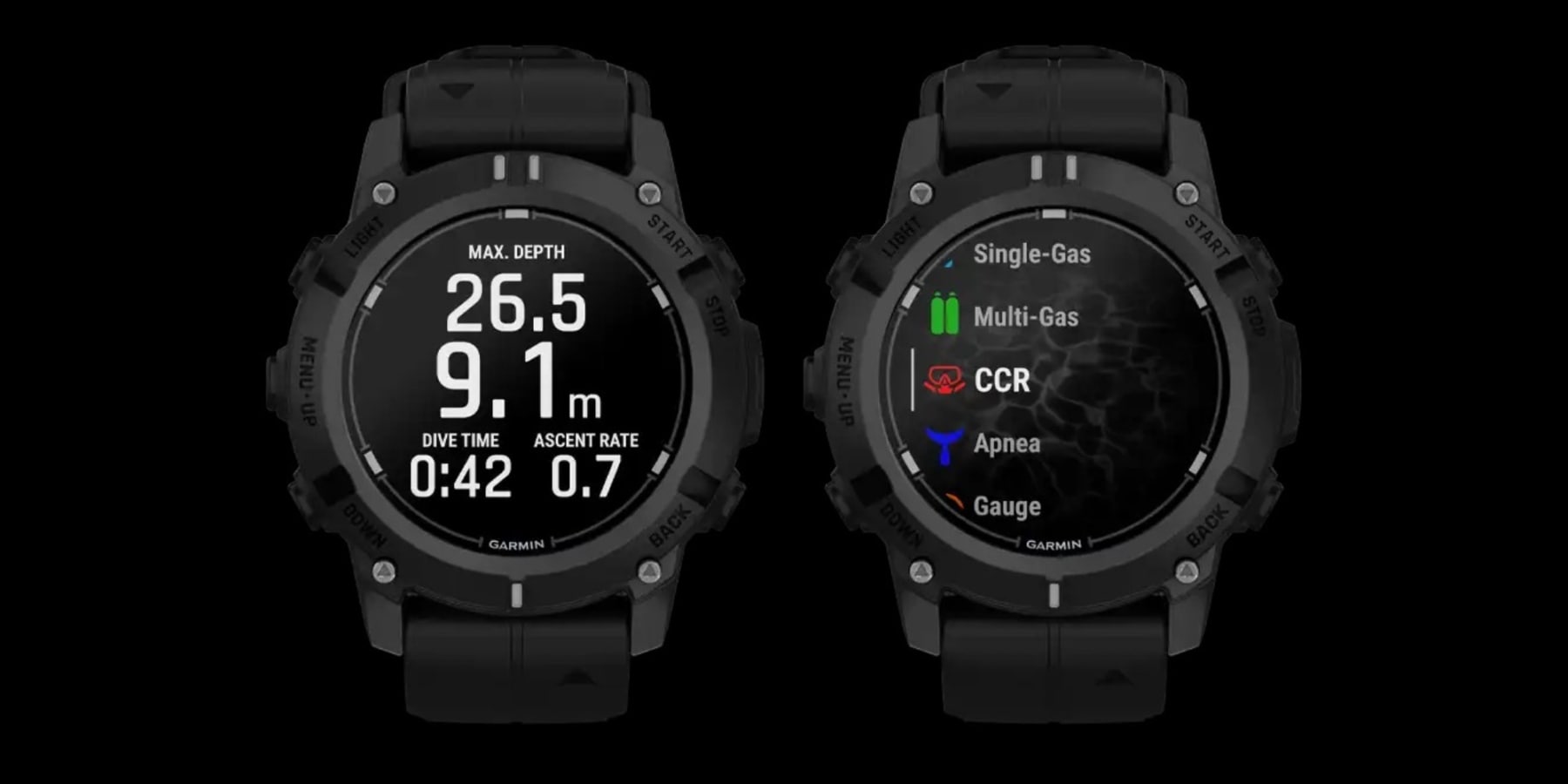 Descent G2 підтримують кілька видів занурення та функції для фрідайвінгу, включаючи графік швидкості. Ще є 3-осьовий компас для підводної навігації та режим великих чисел, що відображає лише ключову інформацію.