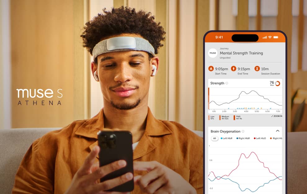 Muse S Athena аналізує мозкову активність, відстежує кровообіг, рівень кисню в крові, частоту серцевих скорочень, дихання, положення тіла та фази сну.
