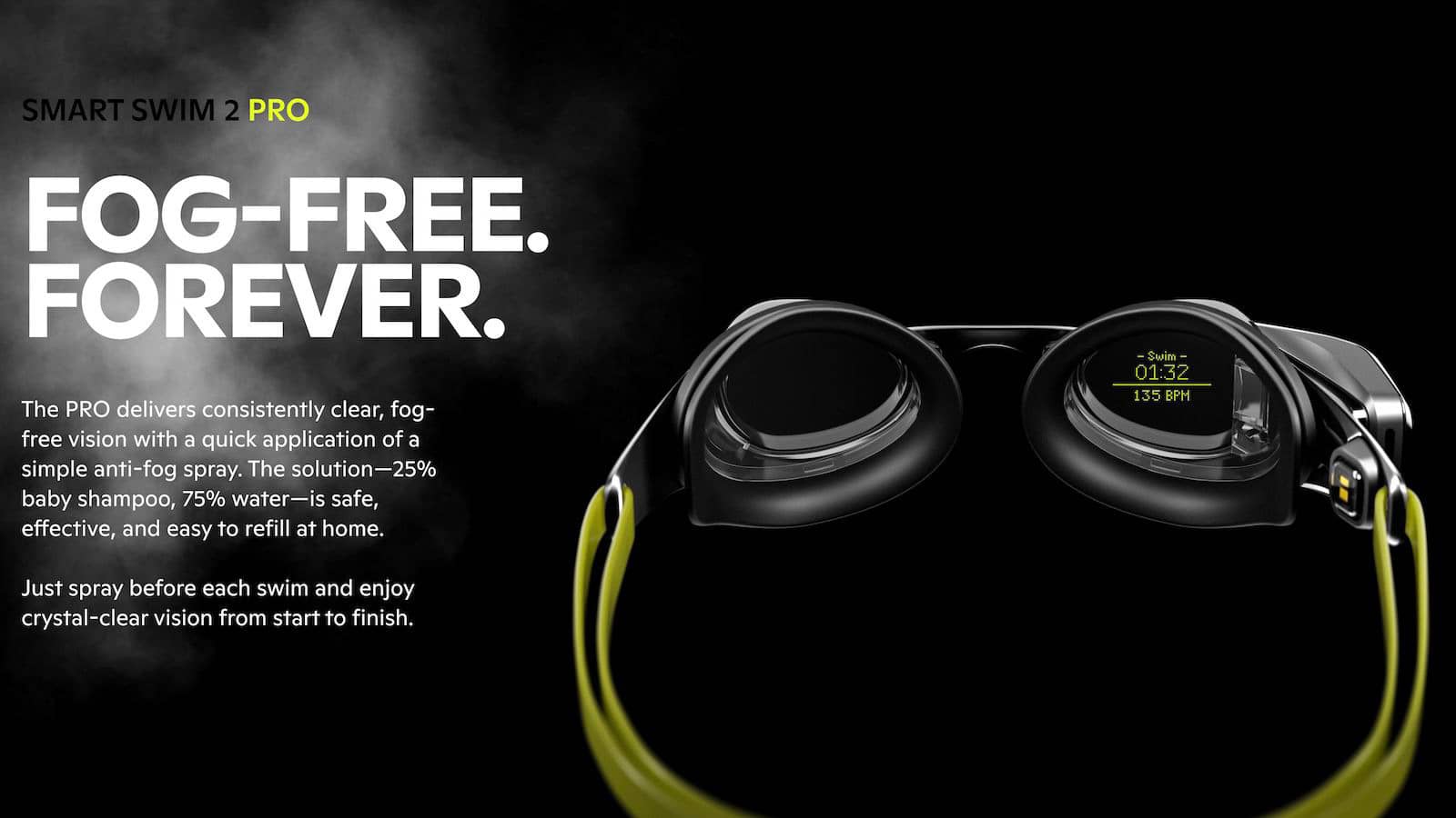 Лінзи захищають від 98% шкідливих УФ-променів (рейтинг UPF 50+), проте скло не сумісне зі звичайними покриттями, що антизапітніють. Натомість FORM пропонує недорогий спрей на основі дитячого шампуню, який потрібно наносити перед кожним запливом.