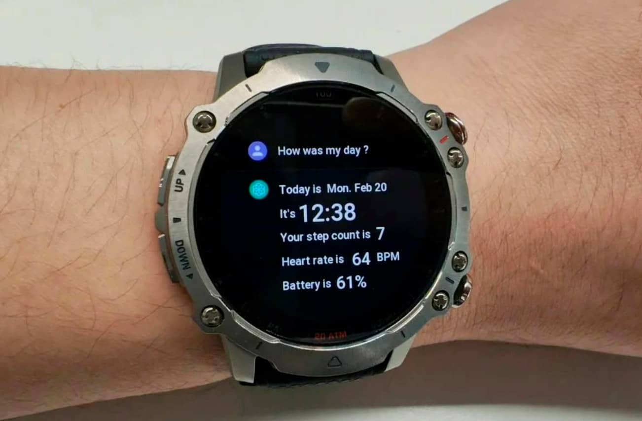 Завдяки інтеграції ChatGPT, користувач може спілкуватися з годинником звичайною мовою. Наприклад, можна поставити запитання «Як минув мій день?», і на екрані буде показано, скільки кроків ви зробили за сьогодні, який ваш пульс на даний момент і скільки відсотків заряду залишилося в акумуляторі.